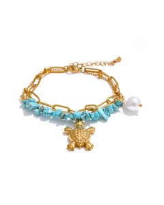 Zawieszka w kształcie żółwia (ok 2cm), turkusowe kamienie i perła