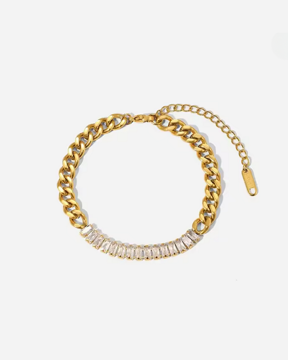 Solidny pozłacany łańcuch w połączeniu z diamencikami tworzy unikatowy dodatek do Twojego codziennego look'u