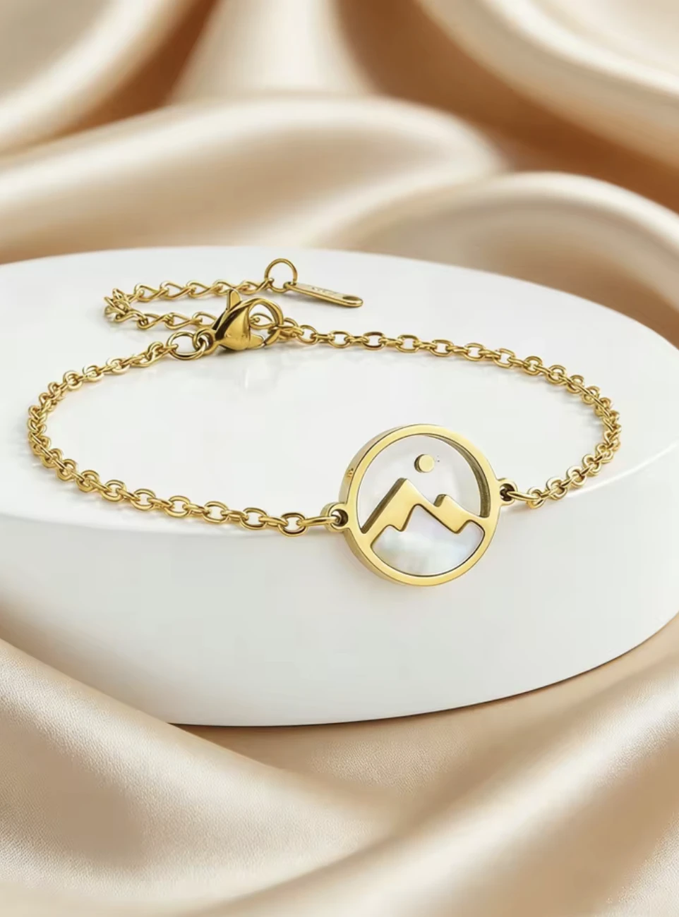 Bransoletka na delikatnym łańcuszku z zawieszką z motywem gór