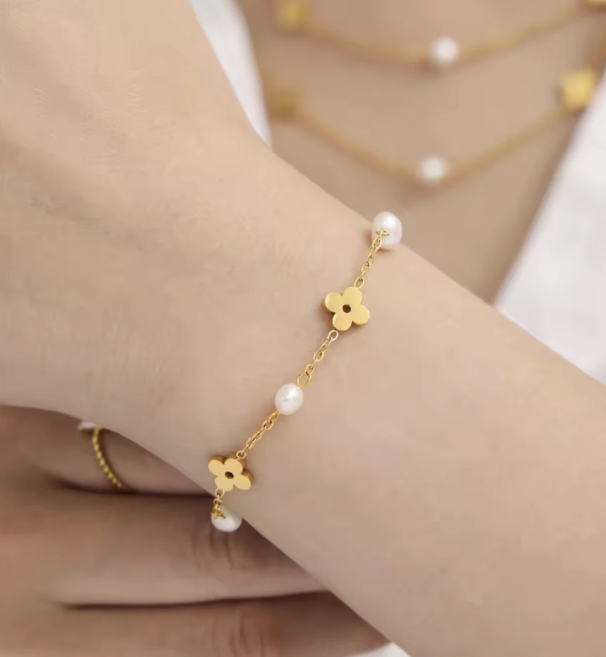 Motyw kwiatka i perły, to kobiecy dodatek do codziennego i wieczornego outfit'u