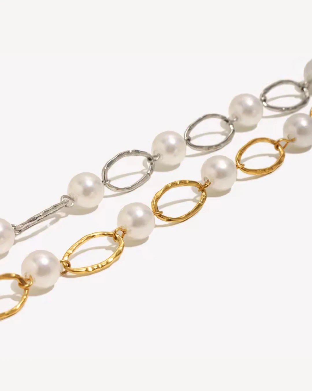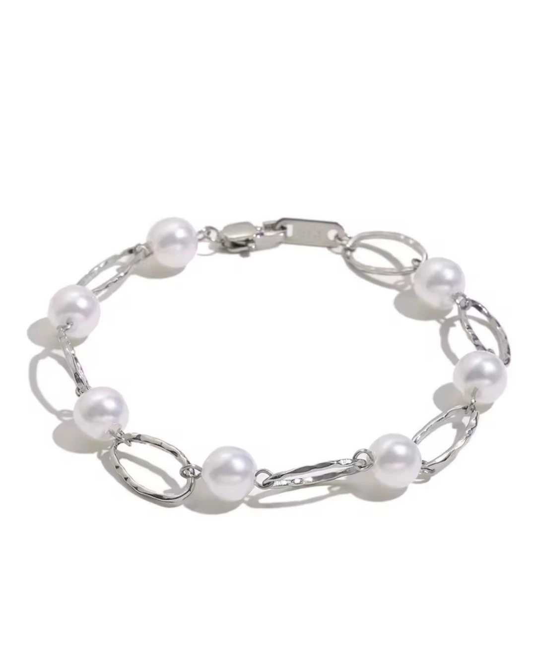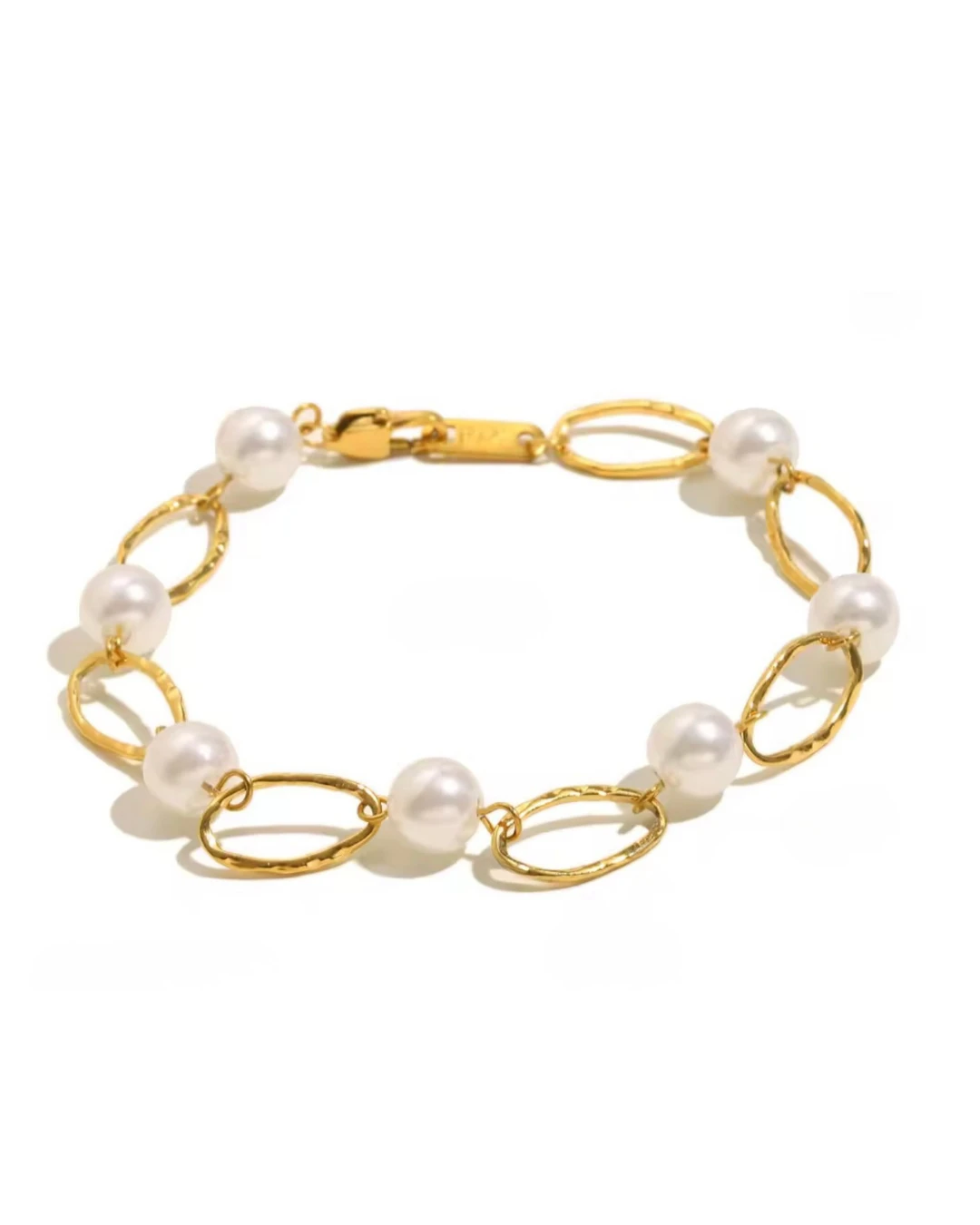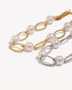 Kobieca, elegancka bransoletka z perłami syntetycznymi.