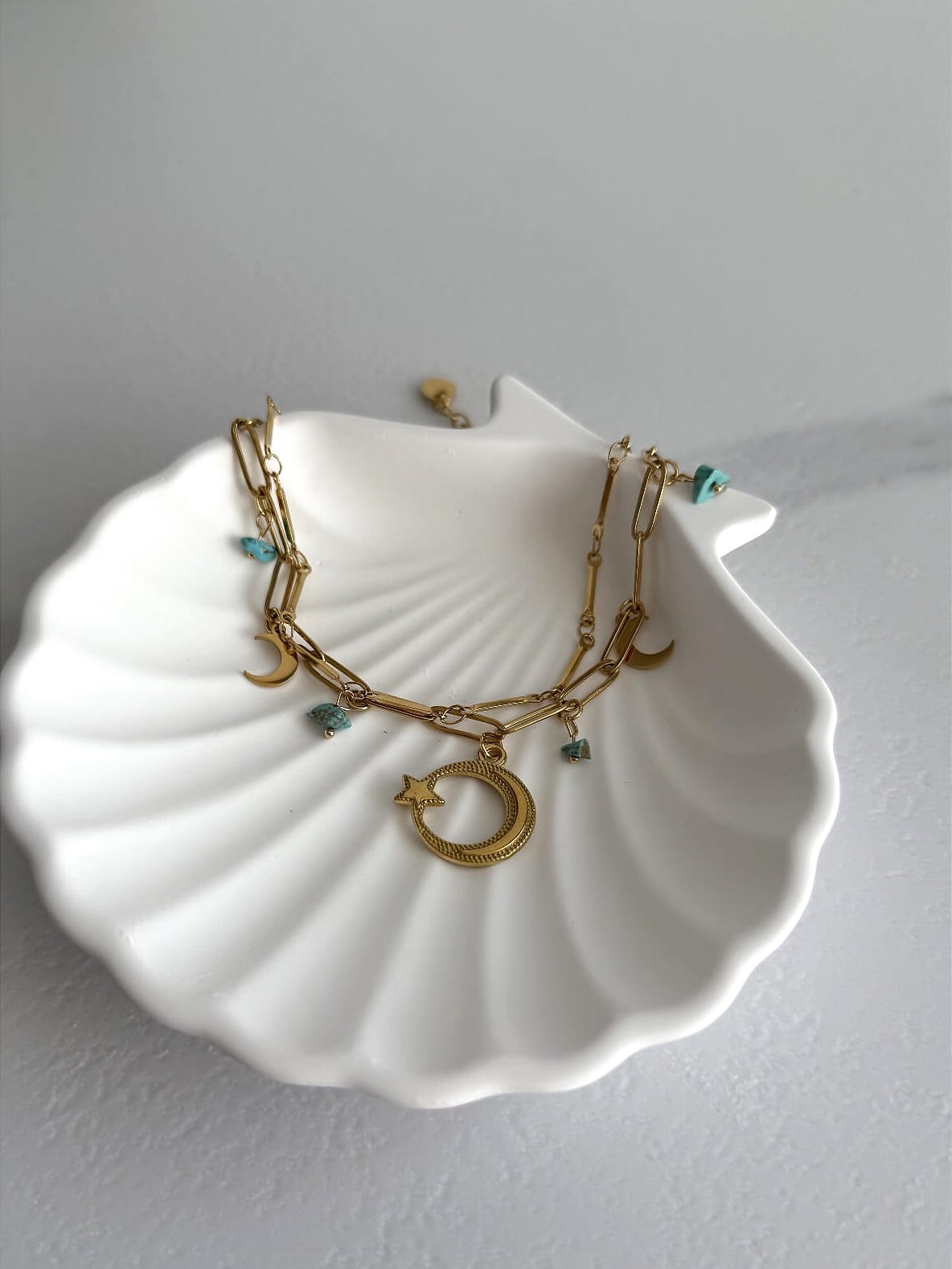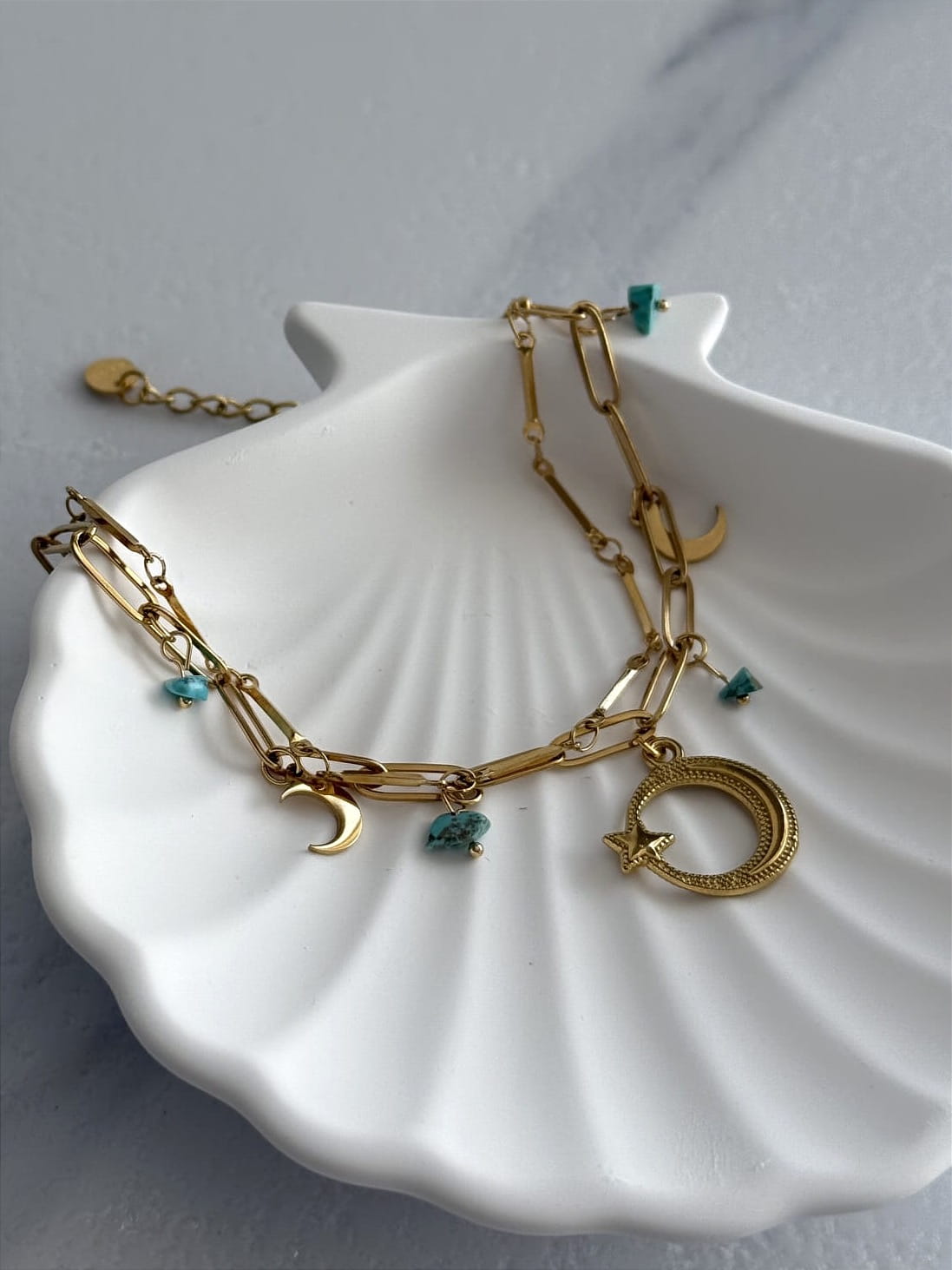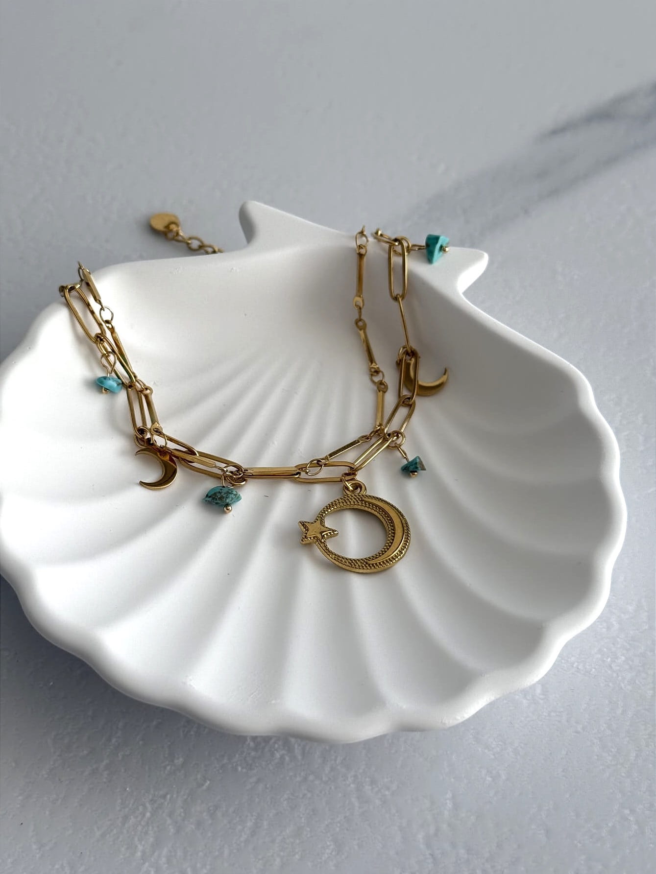 Zawieszki w kształcie księżyca i turkusowych kamieni