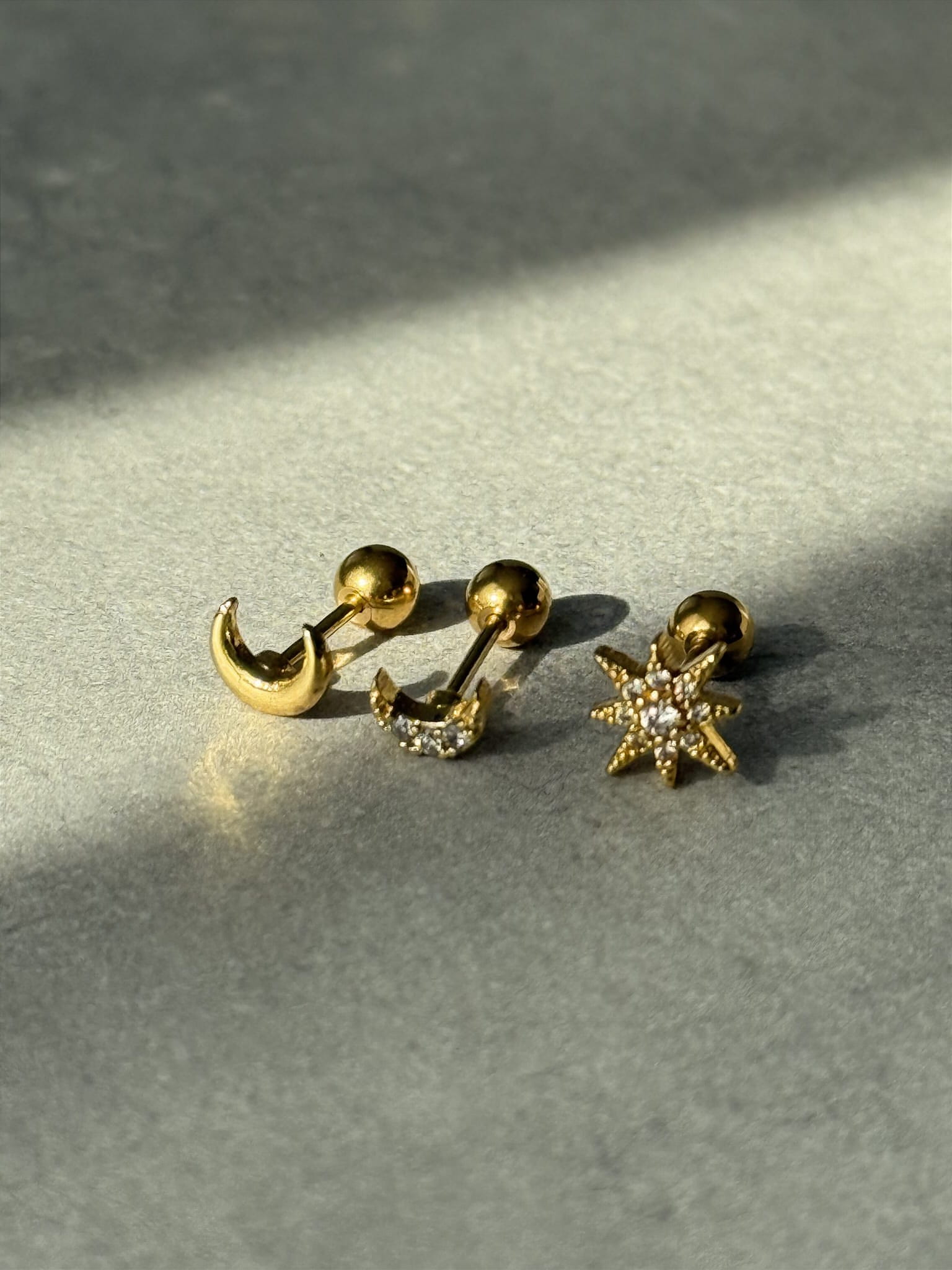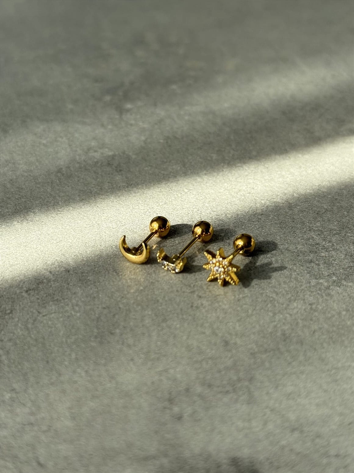 Zestaw 3 sztuk małych kolczyków wkrętek, zakręcane na kulkę.