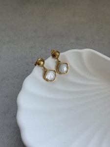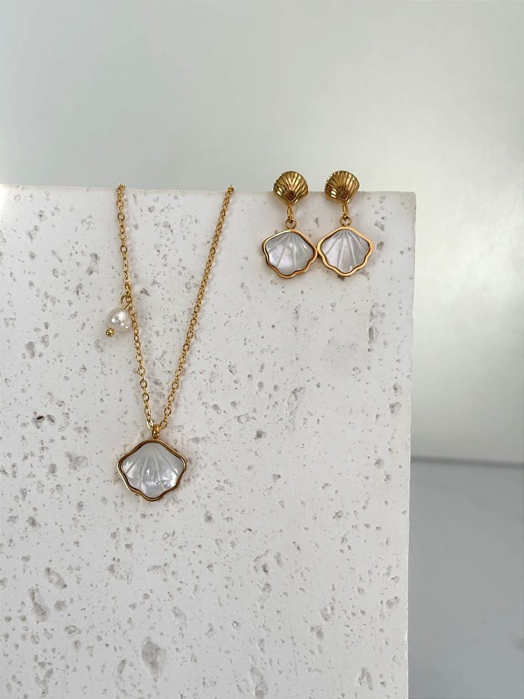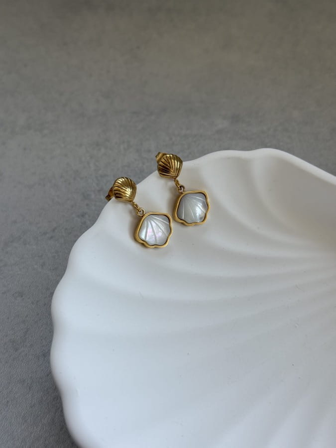 Kobiece i delikatne kolczyki z zawieszką w kształcie muszli.