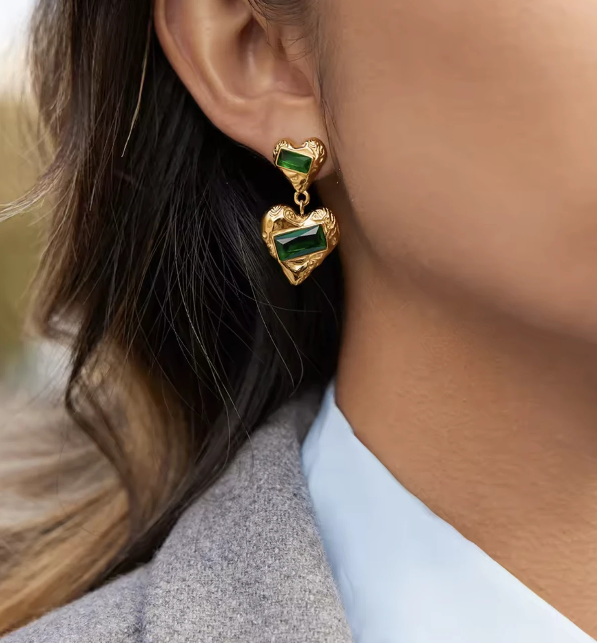 Wiszące serca z zielonym akcentem