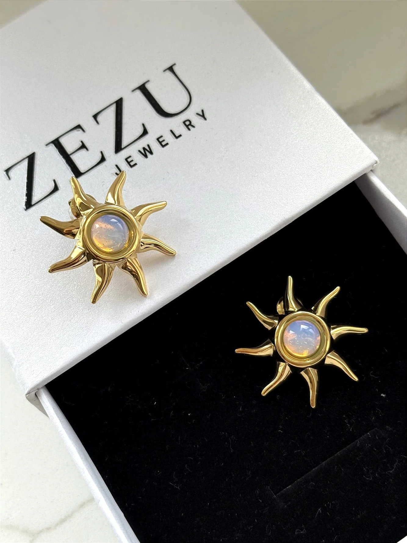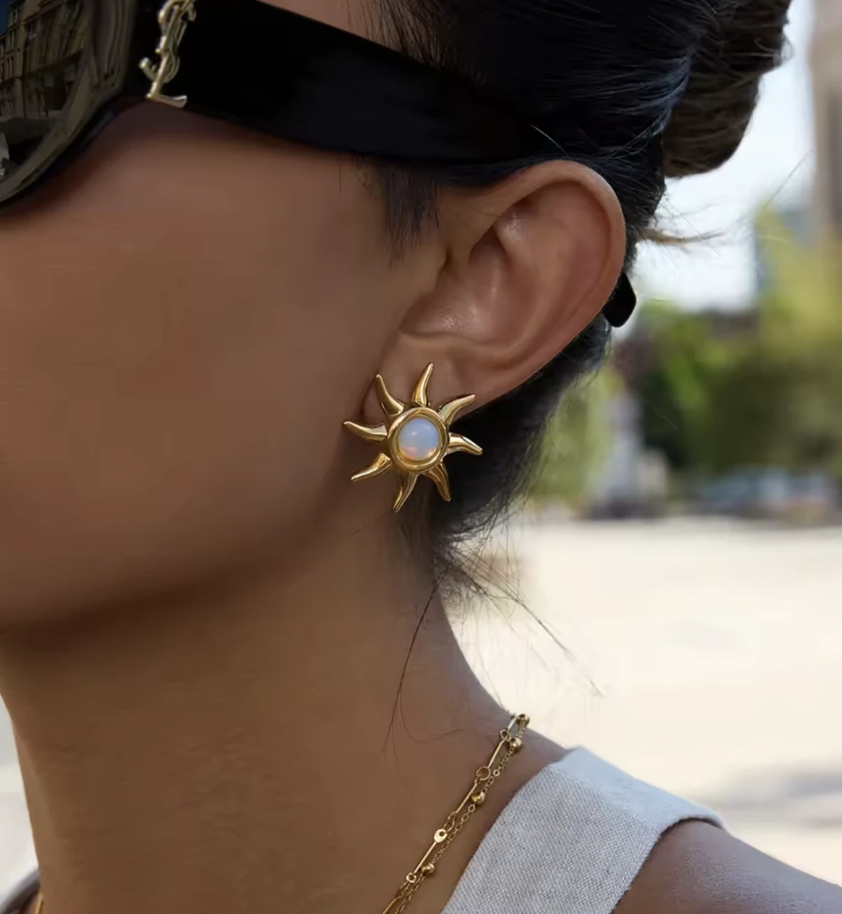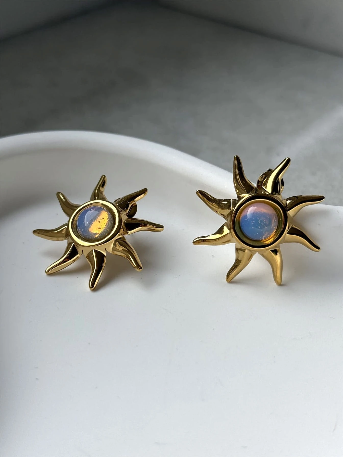 Słoneczne kolczyki z mieniącym się oczkiem
