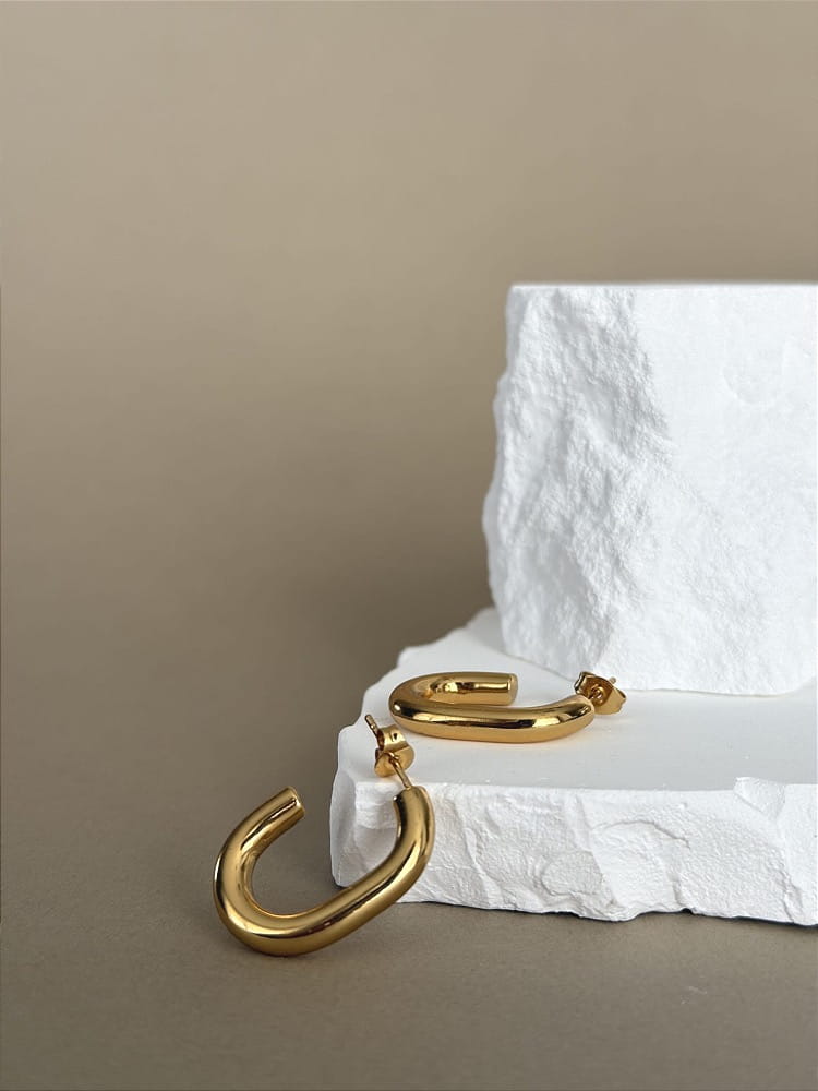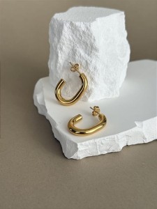 Złote błyszczące kolczyki, wykonane ze stopu jubilerskiego premium, pozłacane złotem 18k. Wodoodporne, nieuczulające.