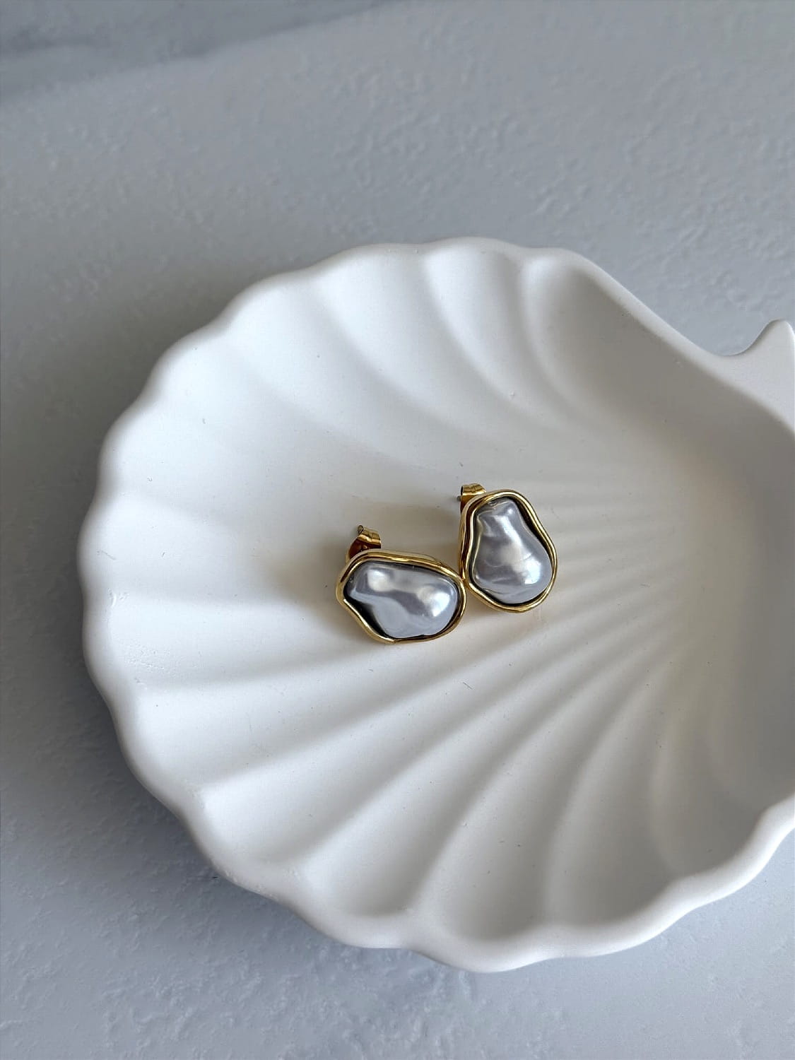Unikatowe kolczyki o falistych oczkach, które wypełnione są masą perłową