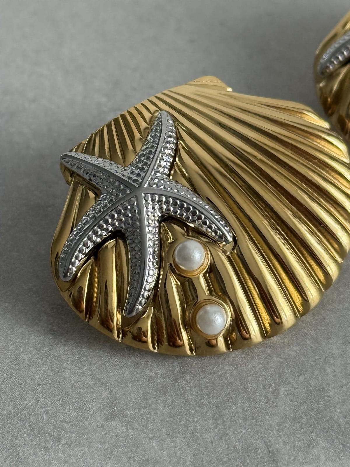 Duże, efektowne kolczyki w kształcie muszli