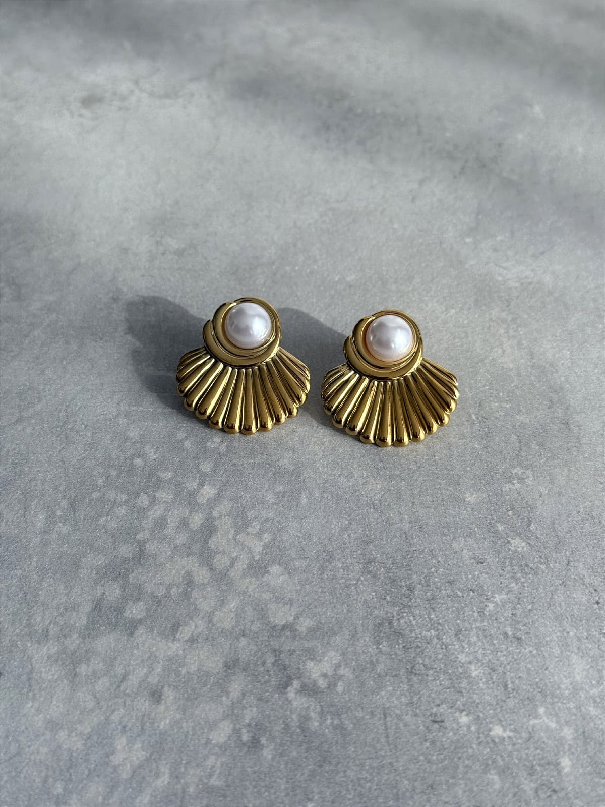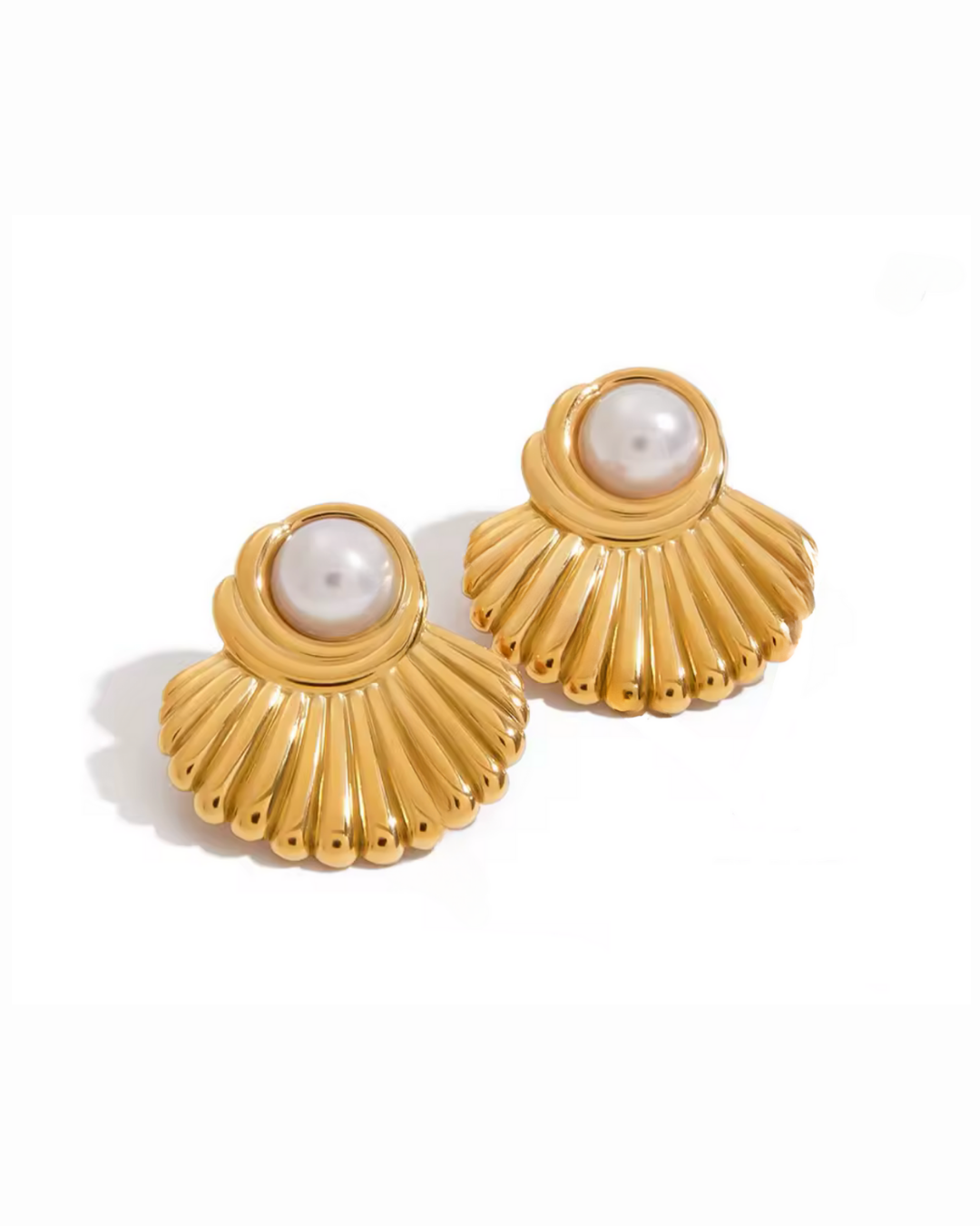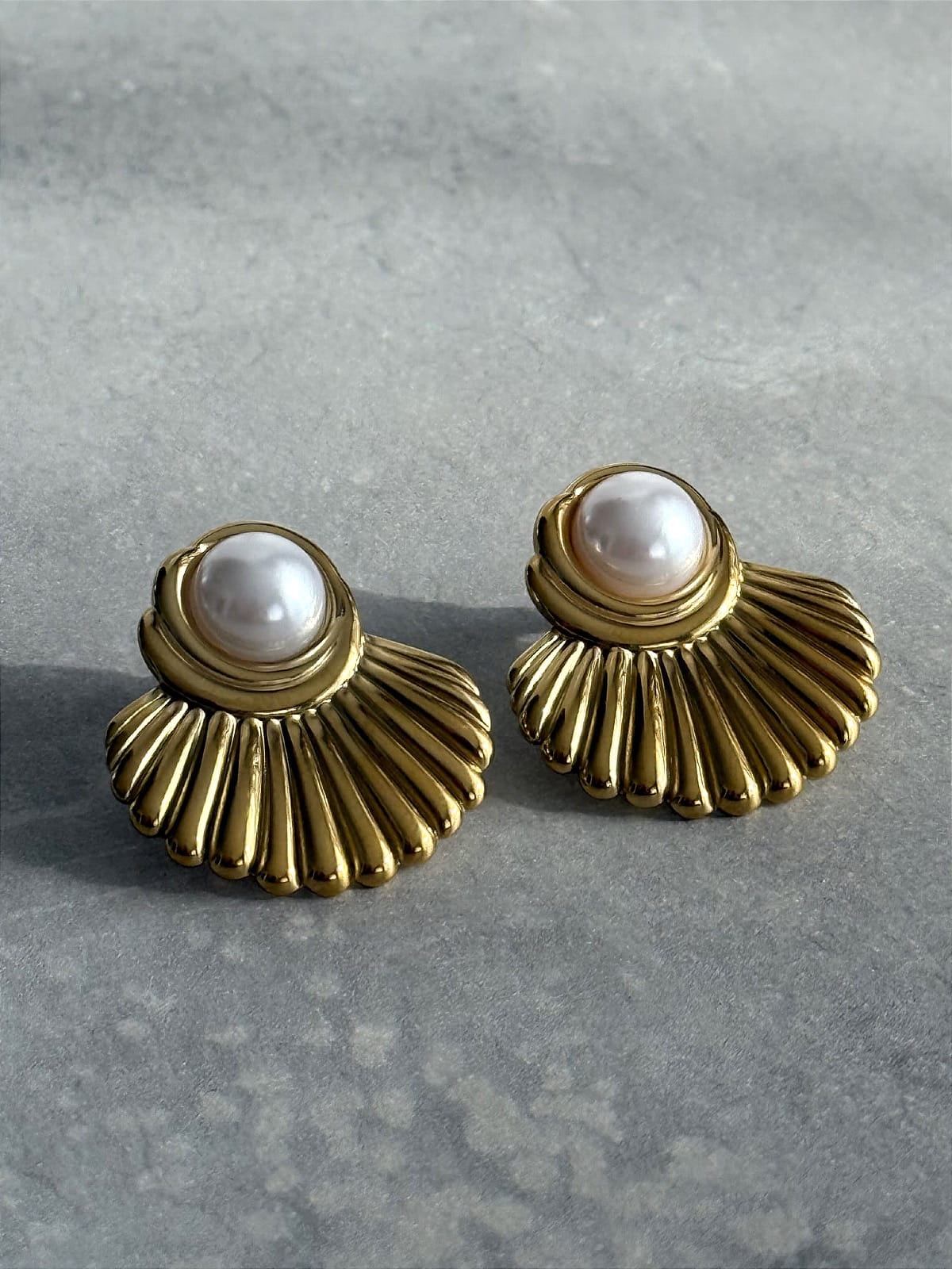 Duże, efektowne kolczyki w kształcie wachlarzy/muszli z perełką