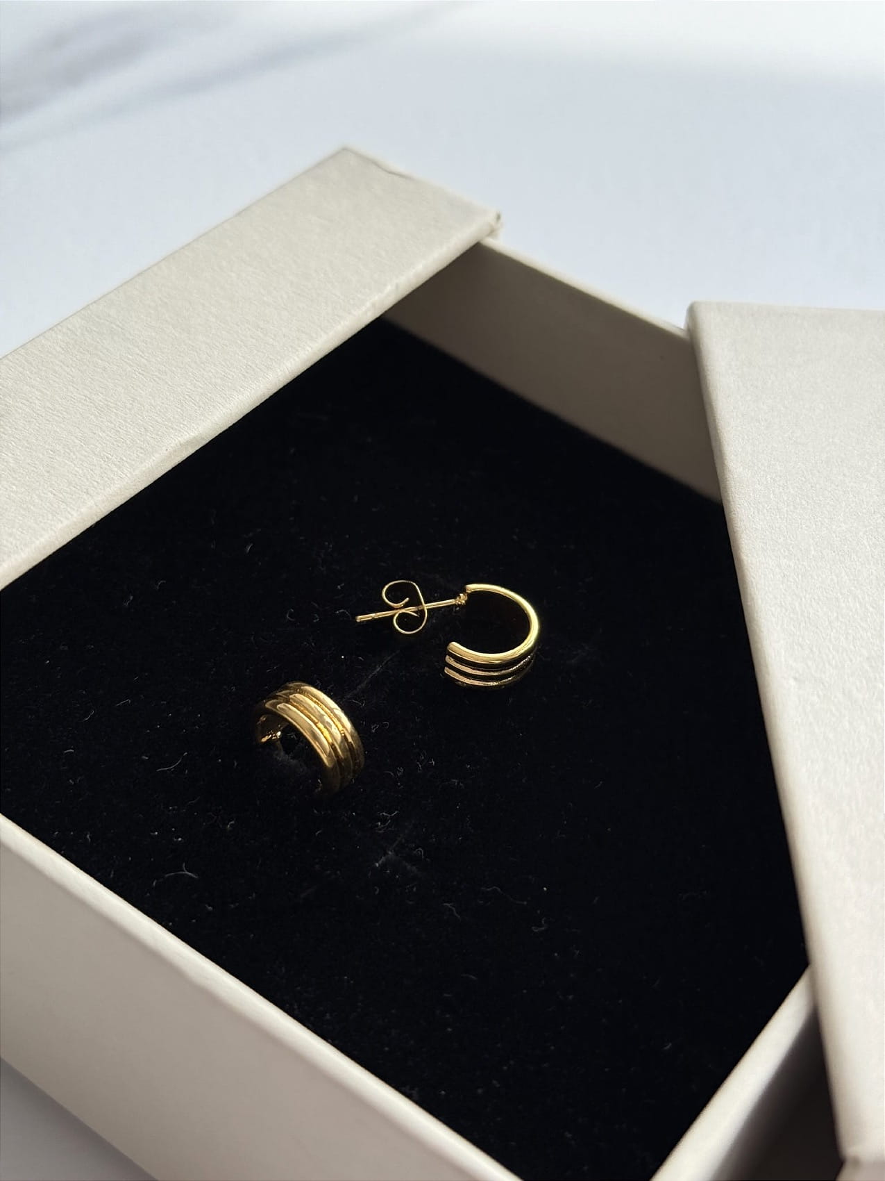 Małe potrójne kolczyki w kształcie kółek