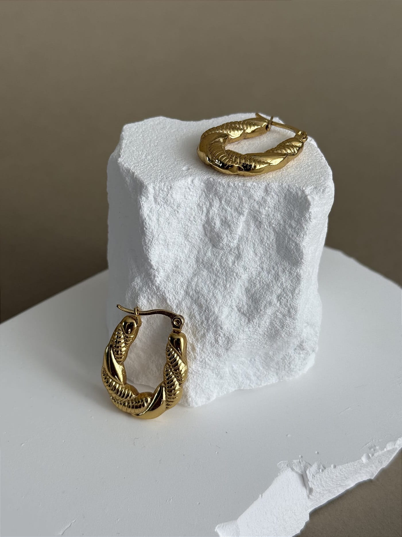 Kolczyki przypominające strukturą wełniany splot