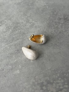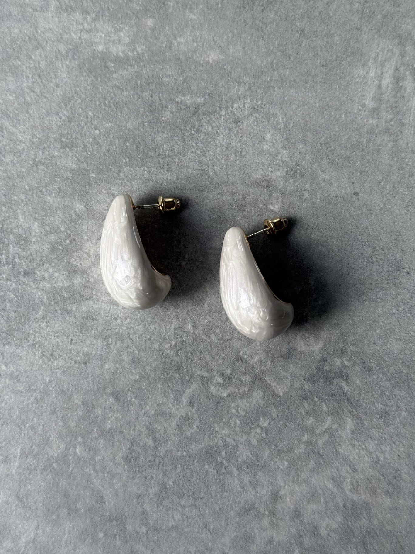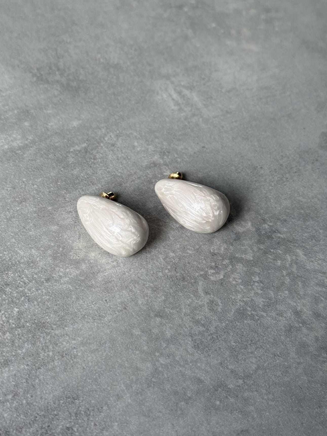 Perłowo-kremowa emalia, stal nierdzewna, zapięcie na sztyft