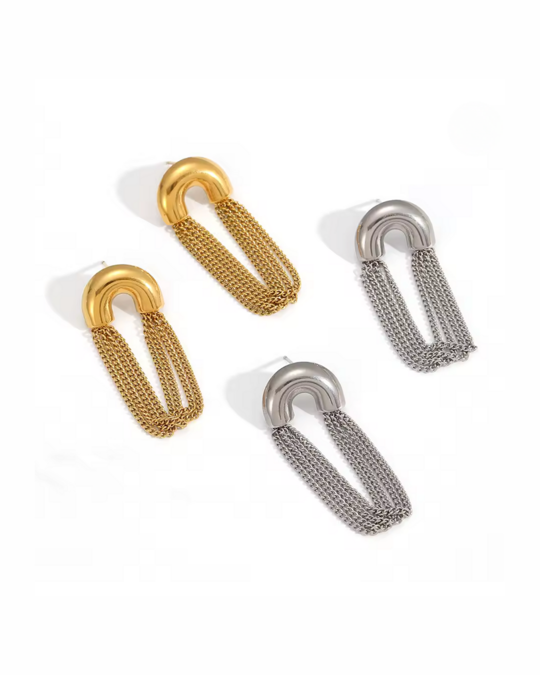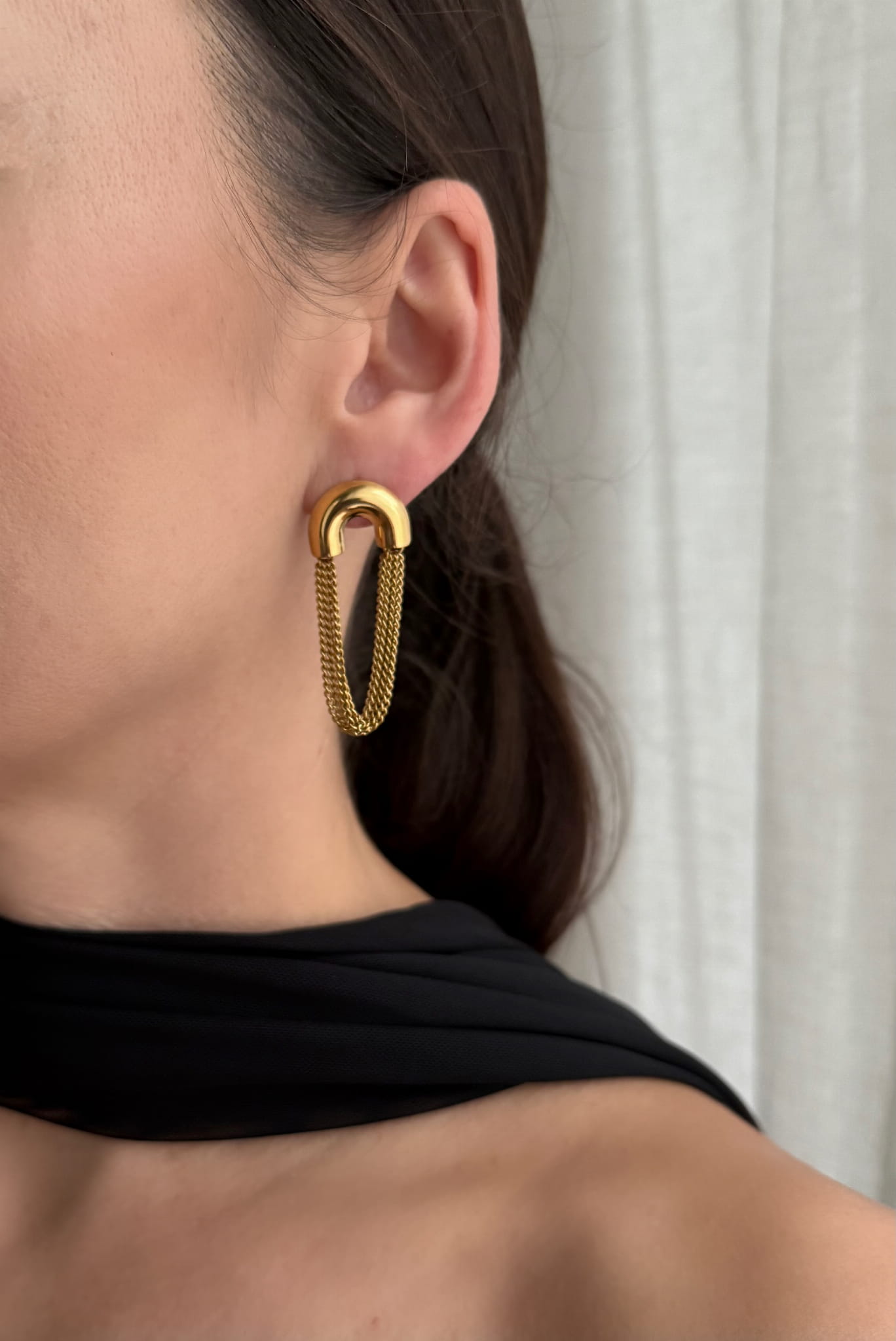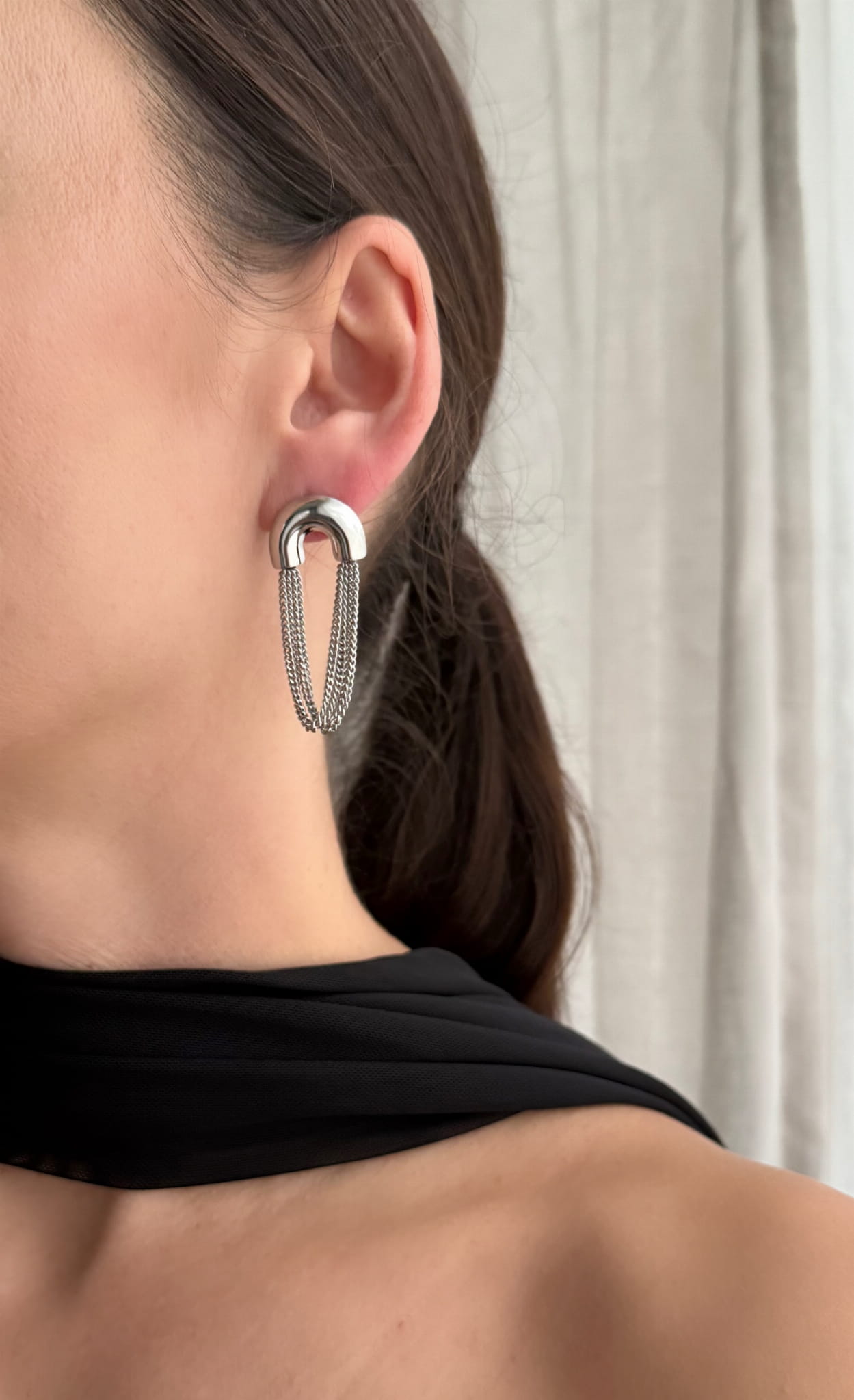 Efektowne kolczyki z wiszącym łańcuszkiem