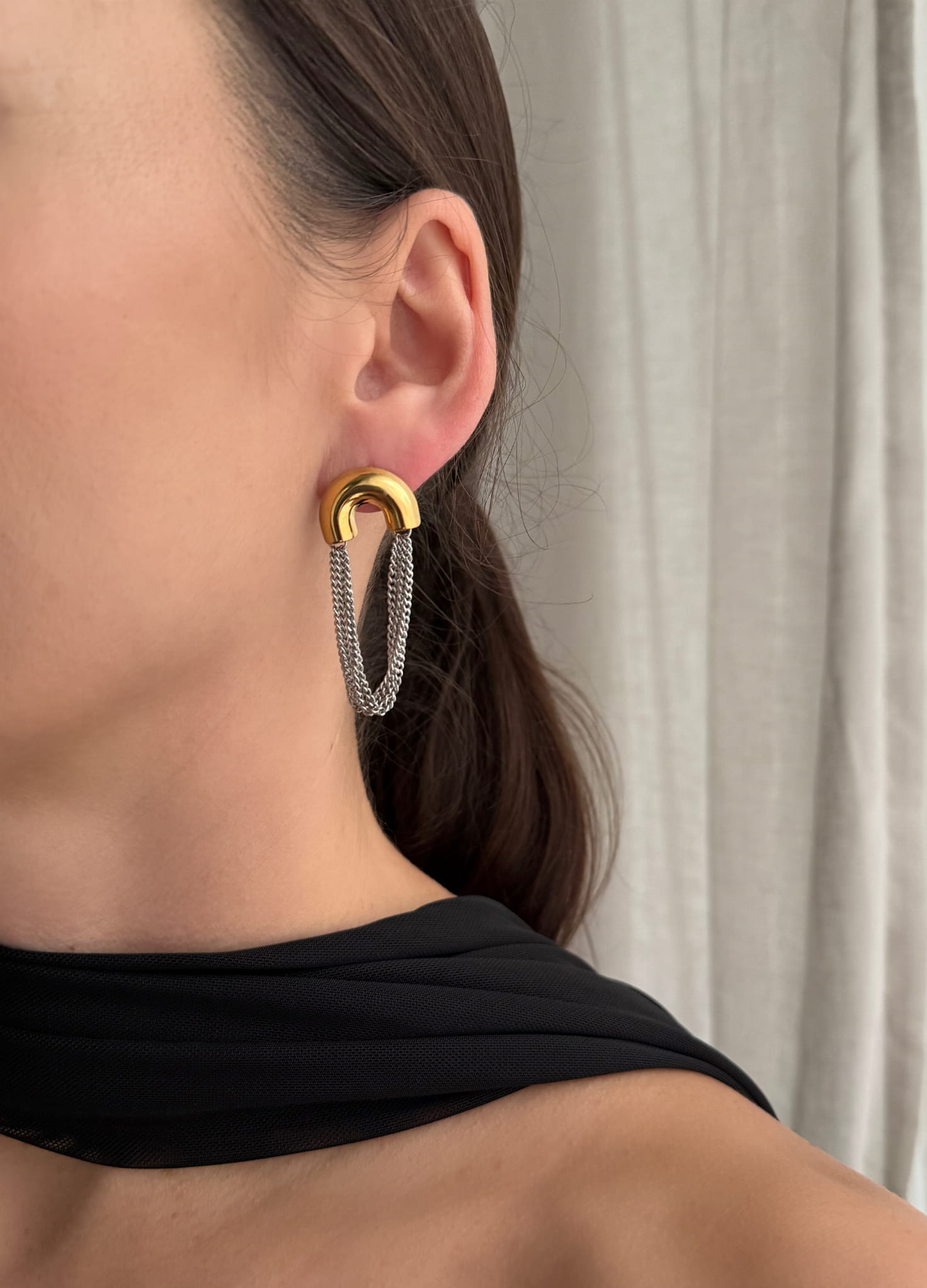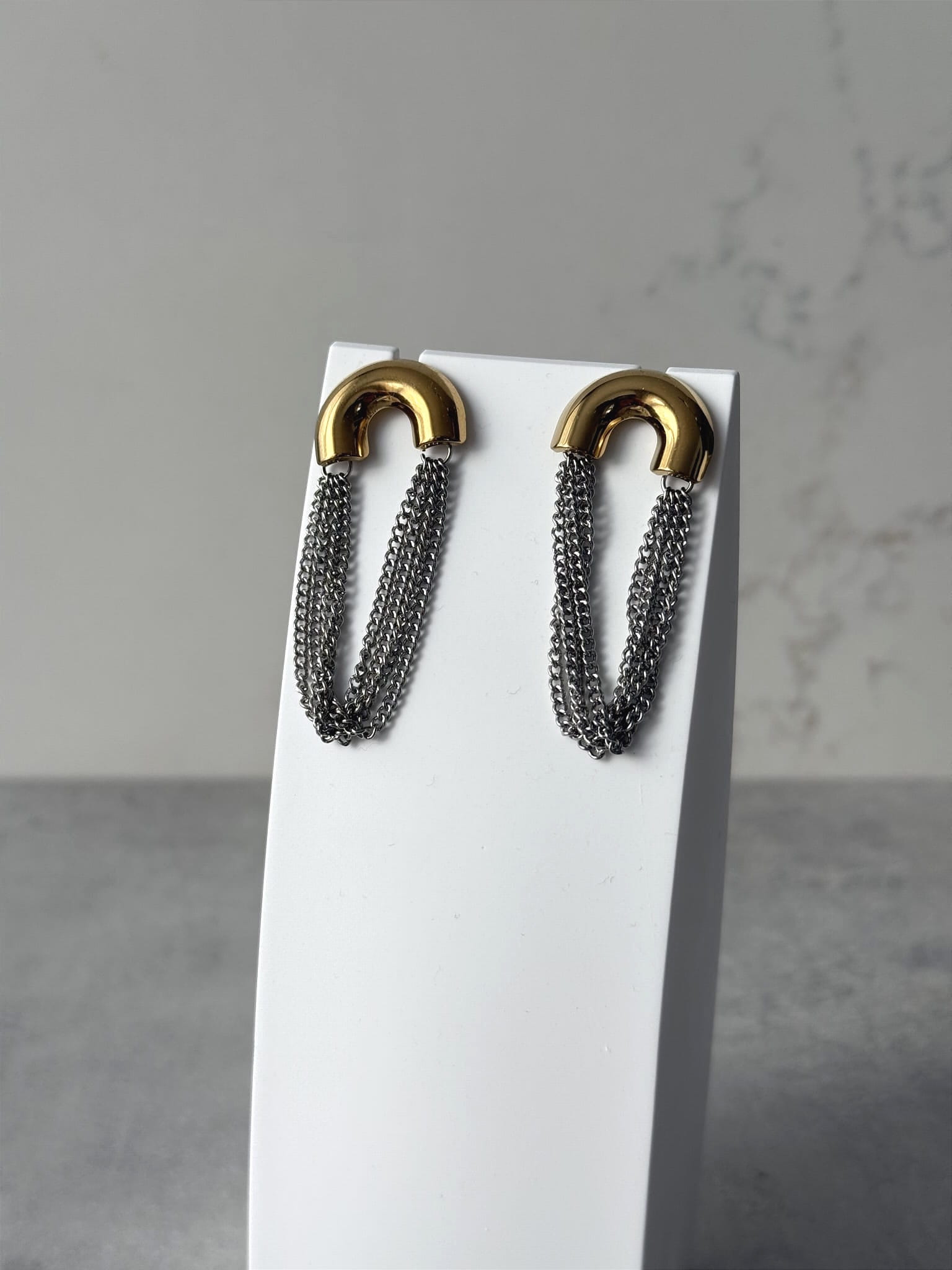 Efektowne kolczyki z wiszącym łańcuszkiem