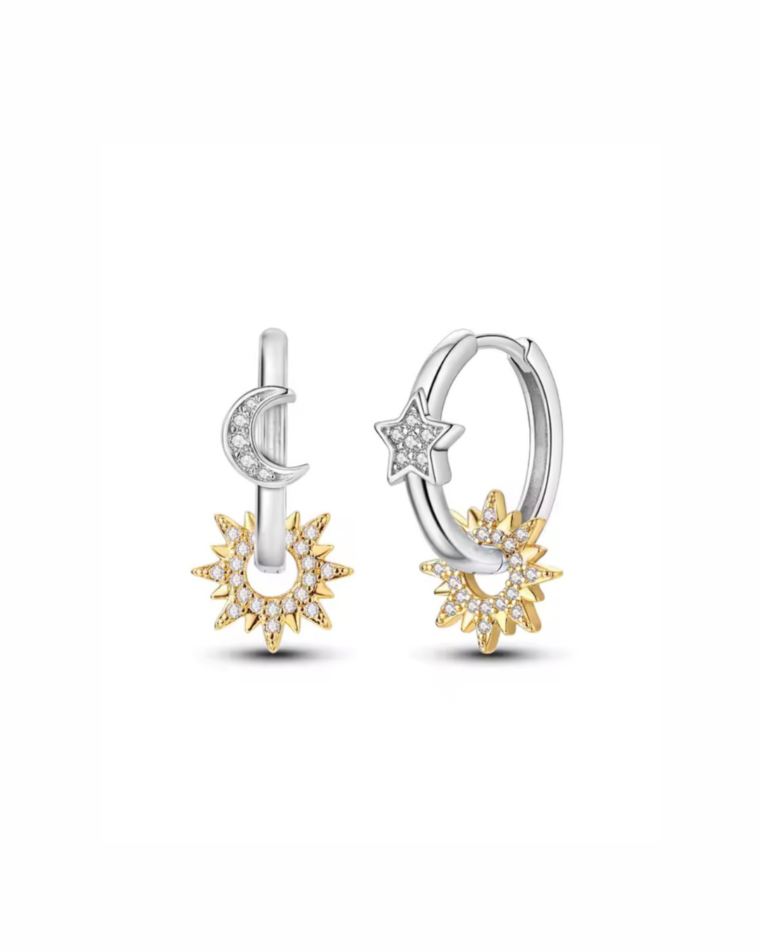 Klasyczne, ponadczasowe kółka z motywem gwiazdki i księżyca, wysadzane cyrkoniami