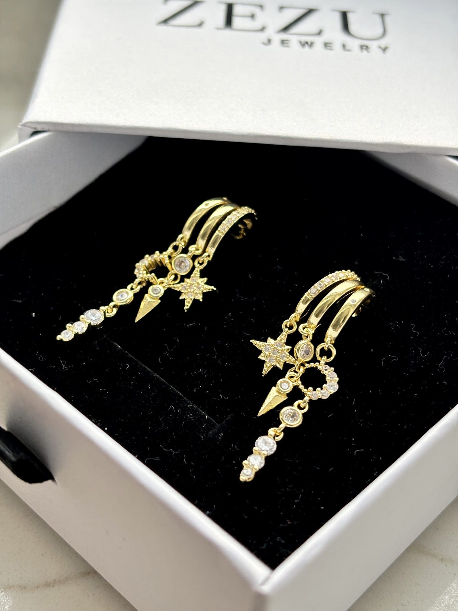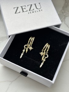 Potrójne kolczyki z zawieszkami