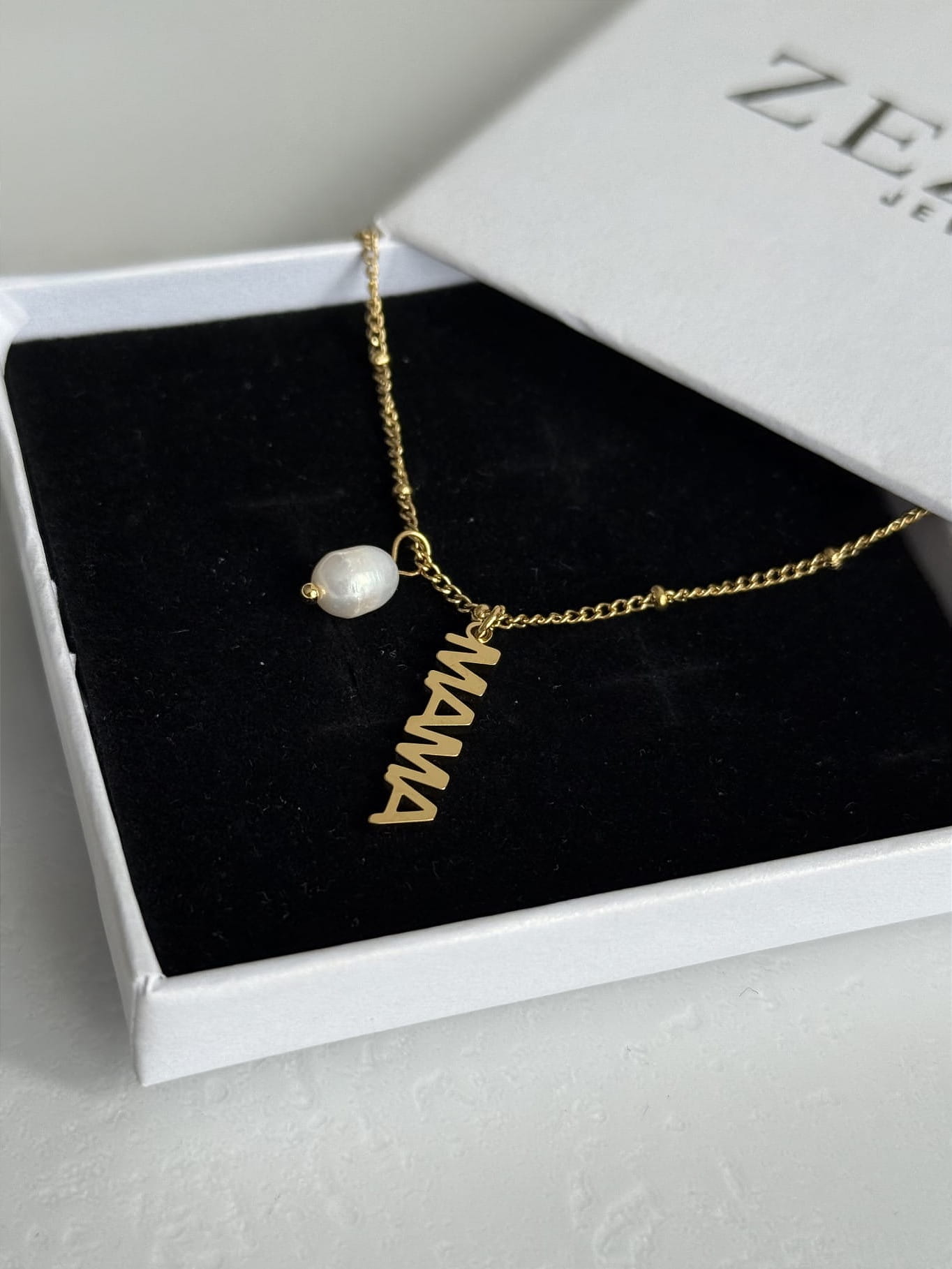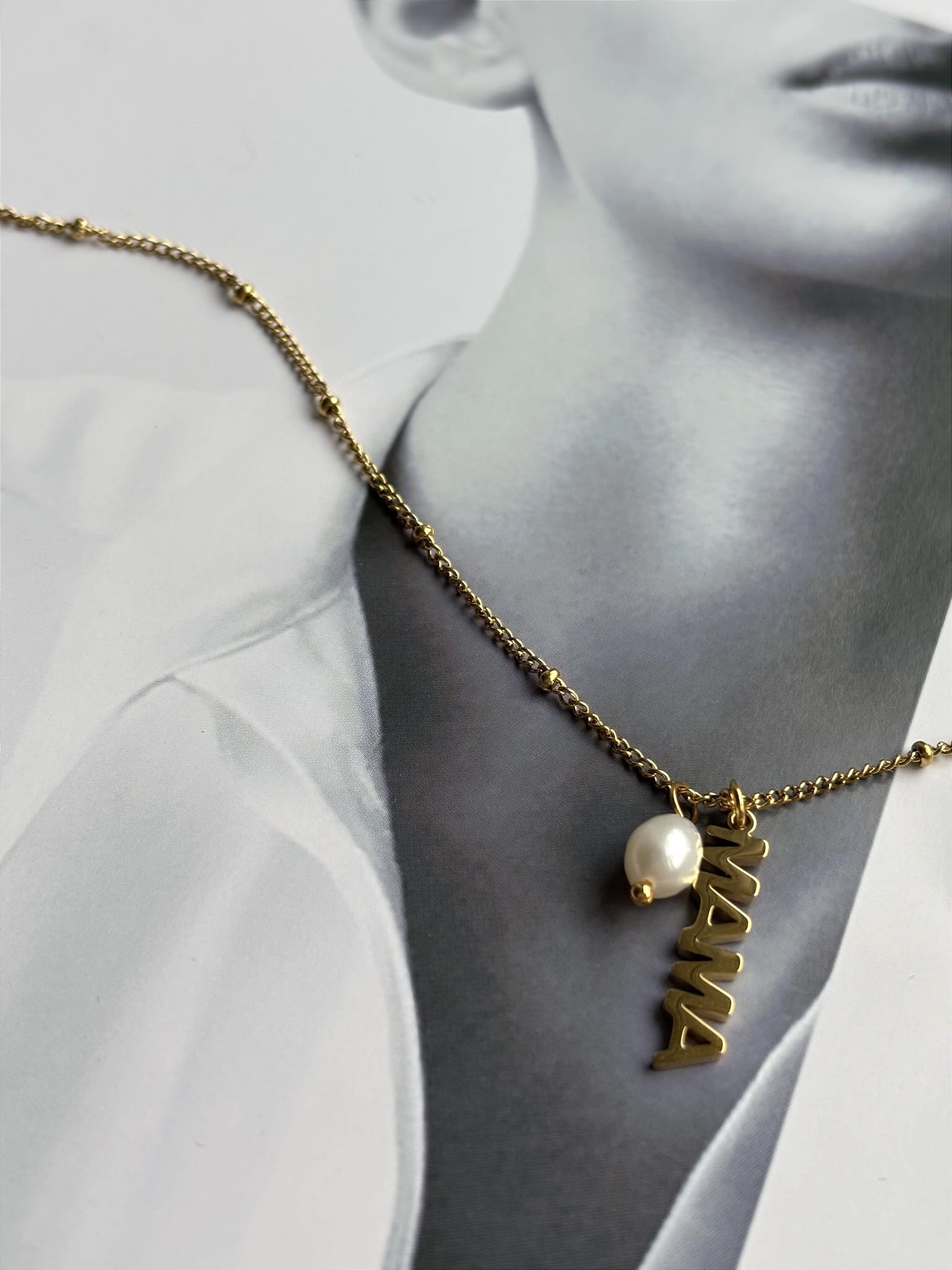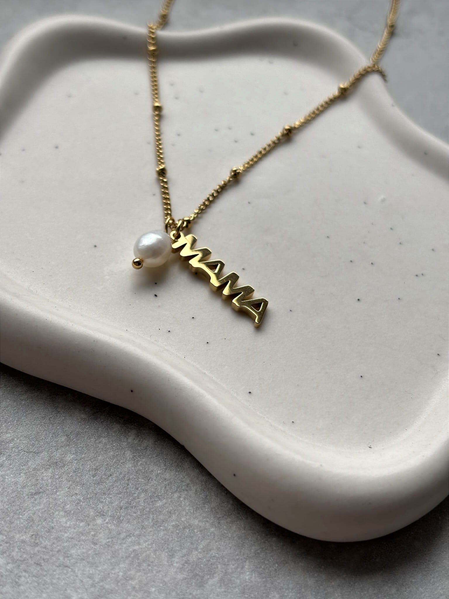 Naszyjnik z zawieszką Mama i perełką