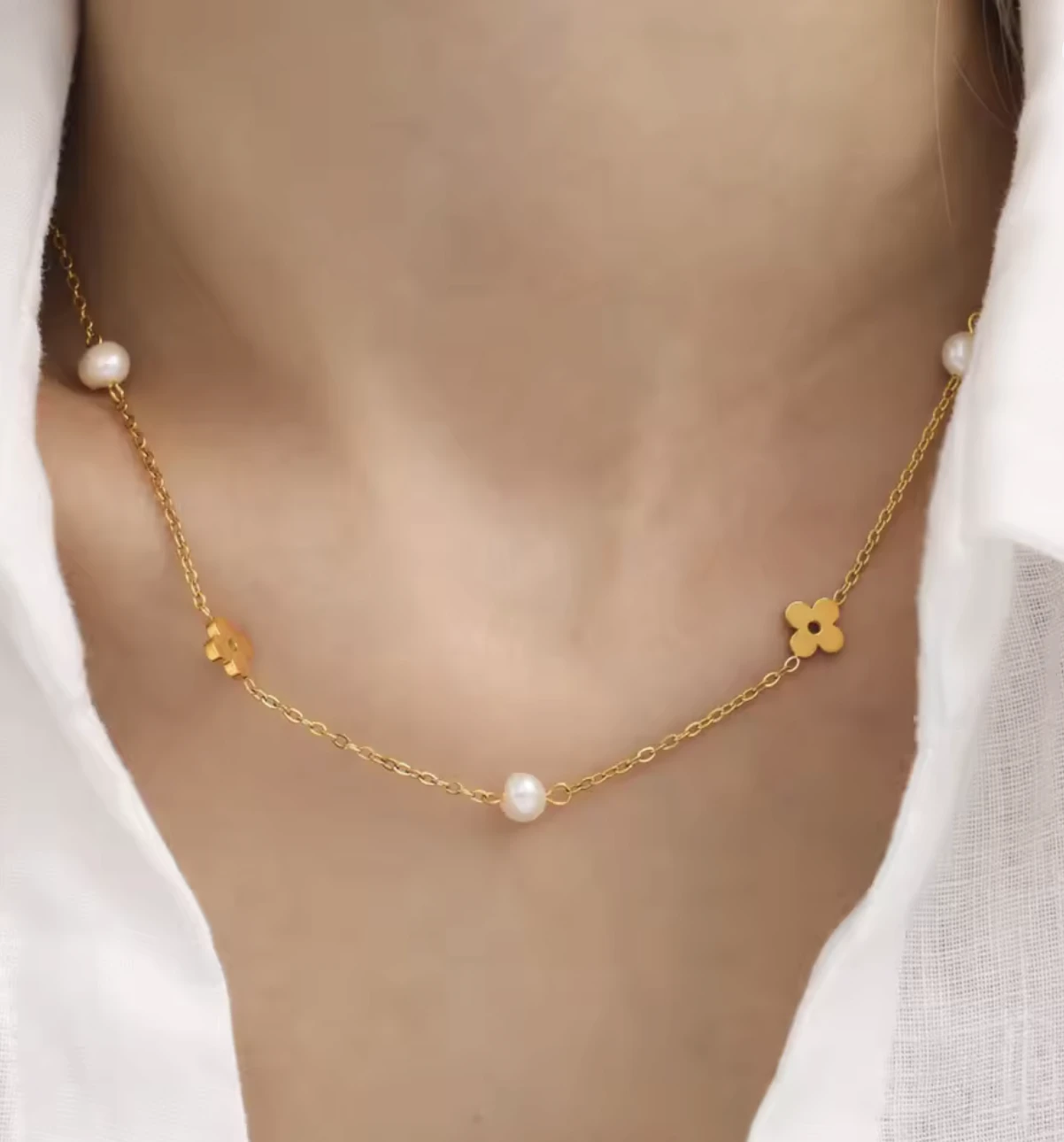 Motyw kwiatka i perły, to kobiecy dodatek do codziennego i wieczornego outfit'u