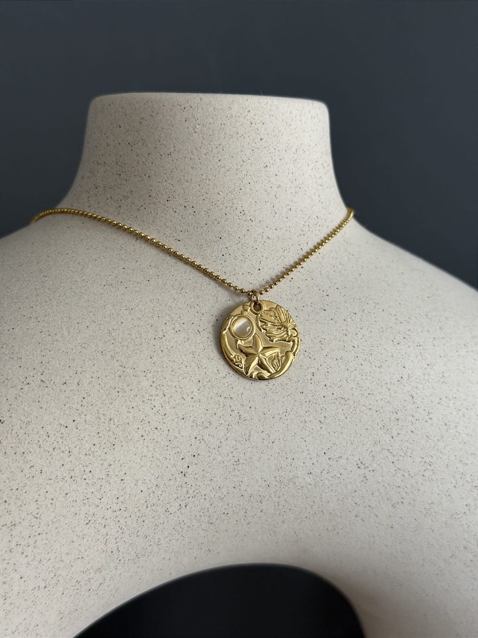Unikatowy naszyjnik z okrągłą zawieszką z morskim motywem