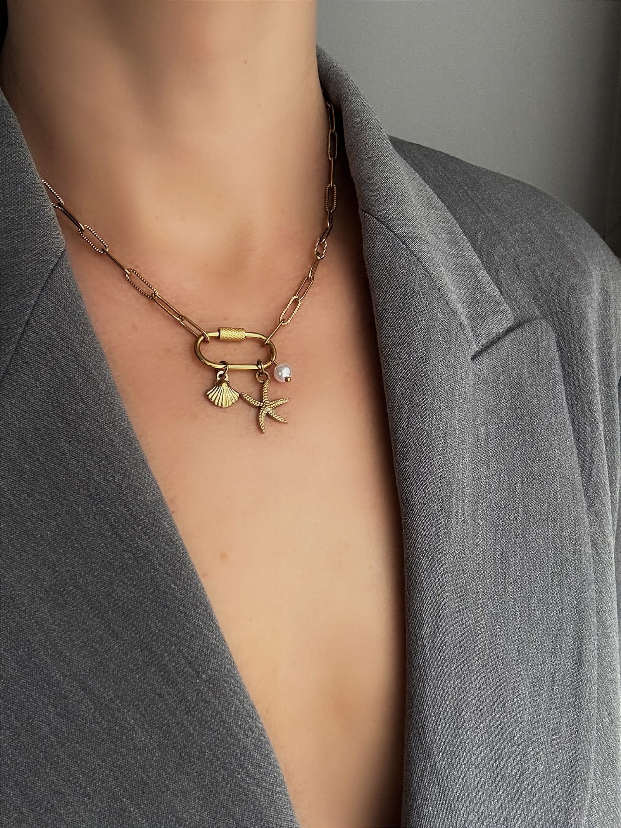 Naszyjnik z karabińczykiem i zawieszkami w stylu morskim