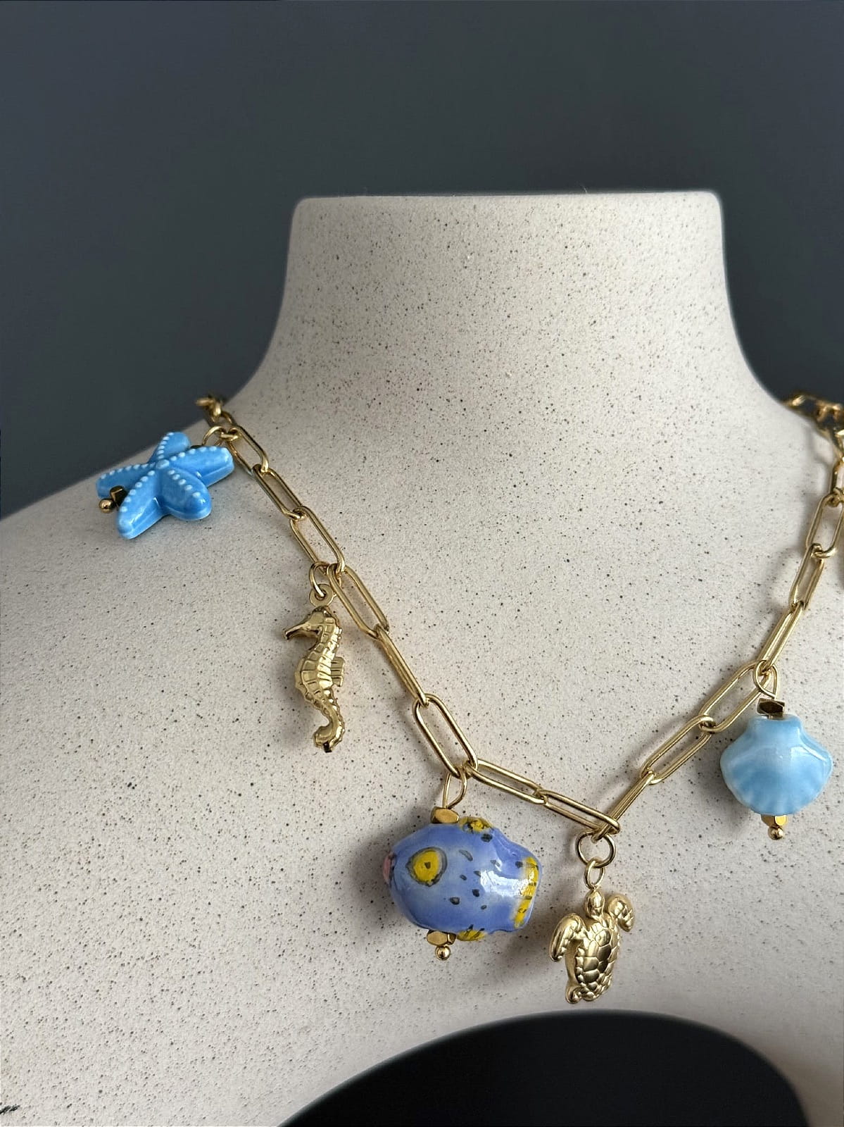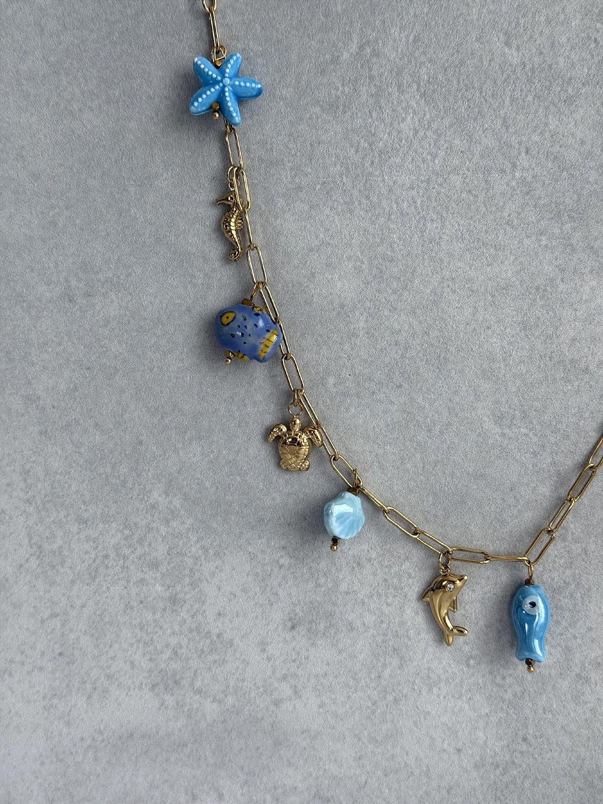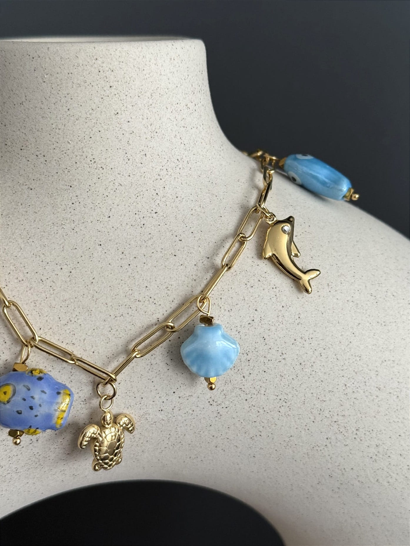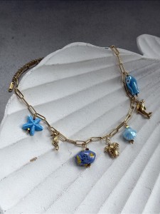 Całość utrzymana w kolorystyce morza, błękit przywodzi na myśl plażę, słońce i morze.