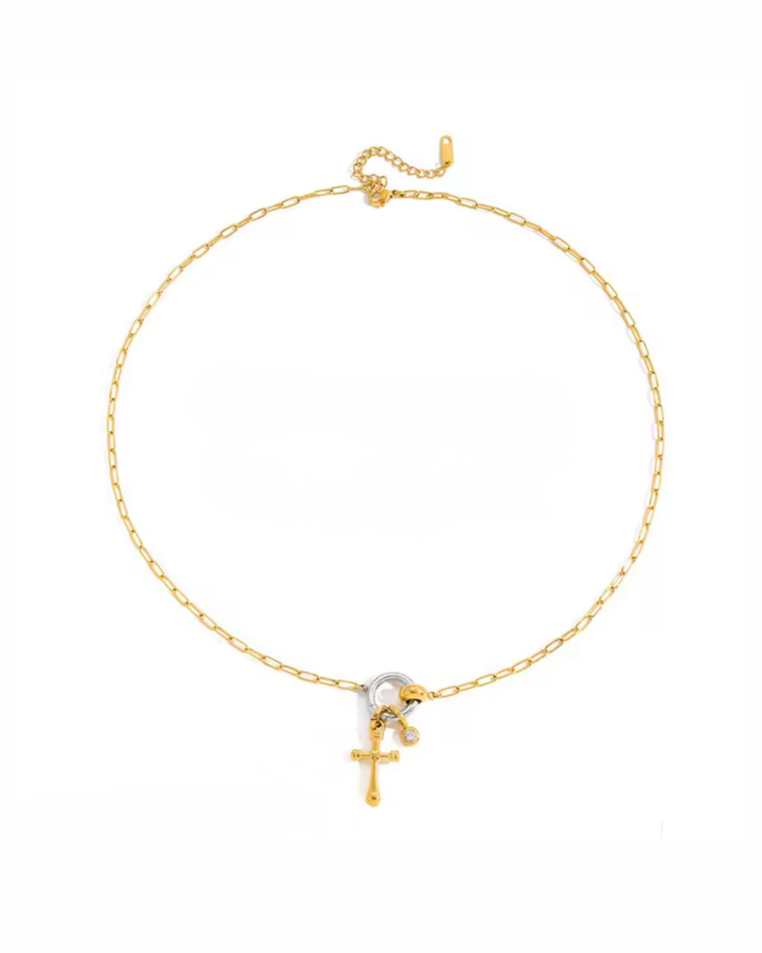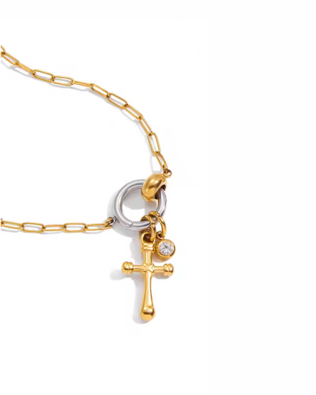 Zawieszka w kształcie Krzyża i kulki z diamencikiem w kolorze białym