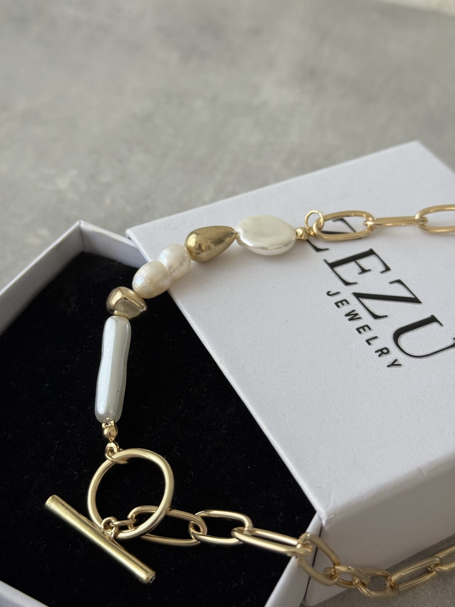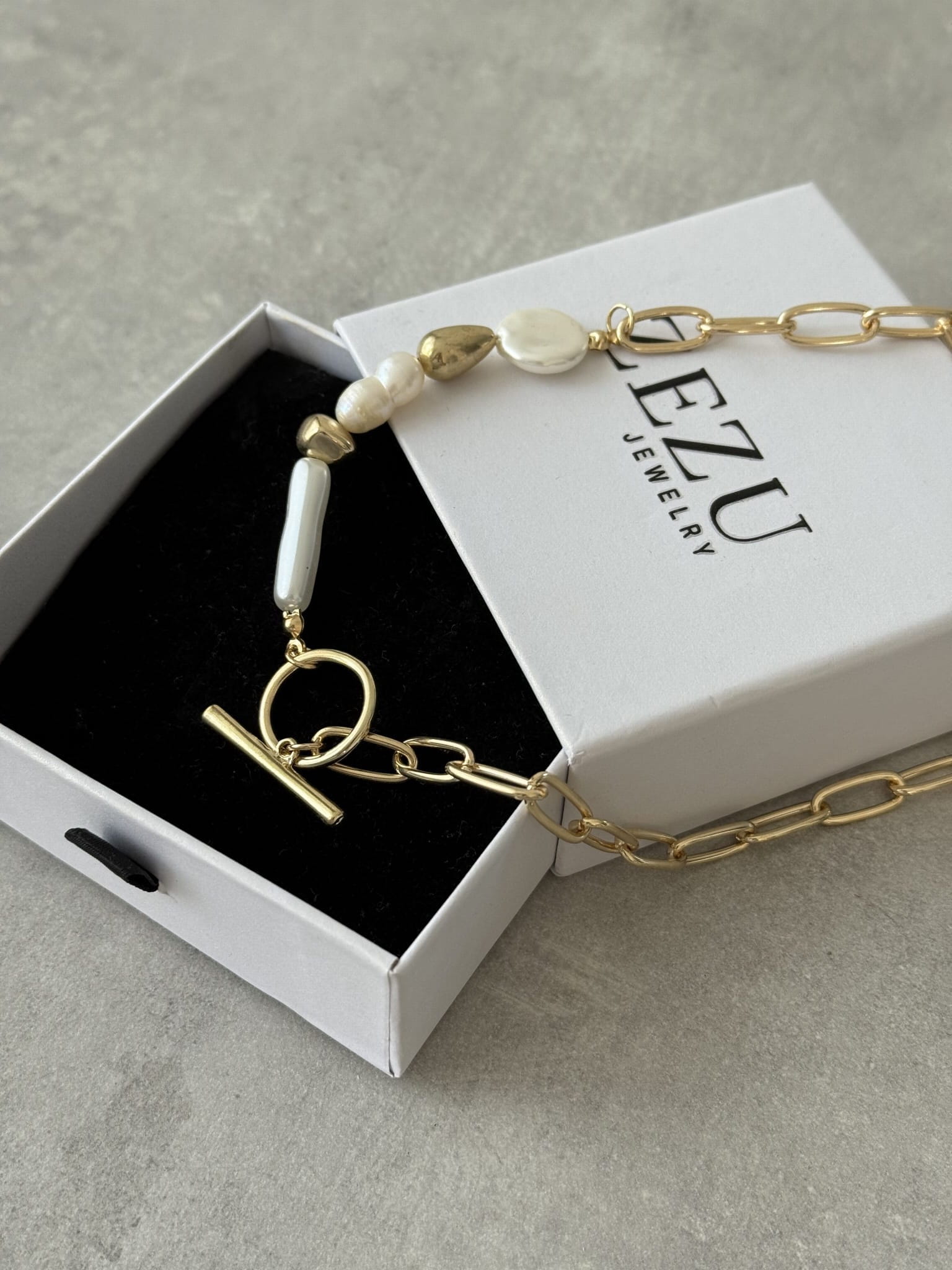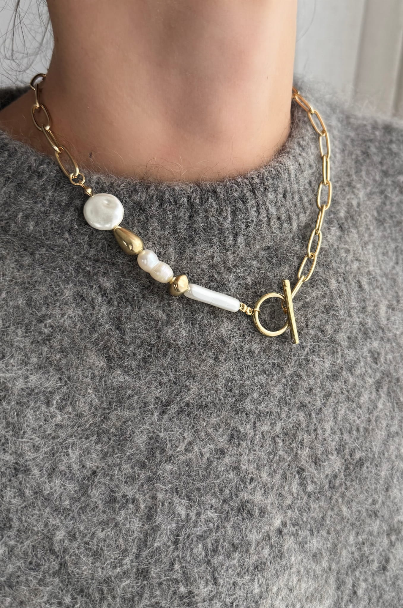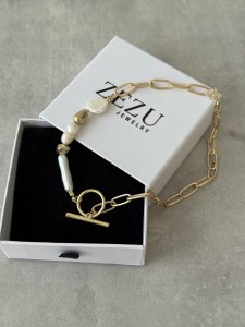 Połączenie łańcuszka z asymetrycznymi perłami syntetycznymi