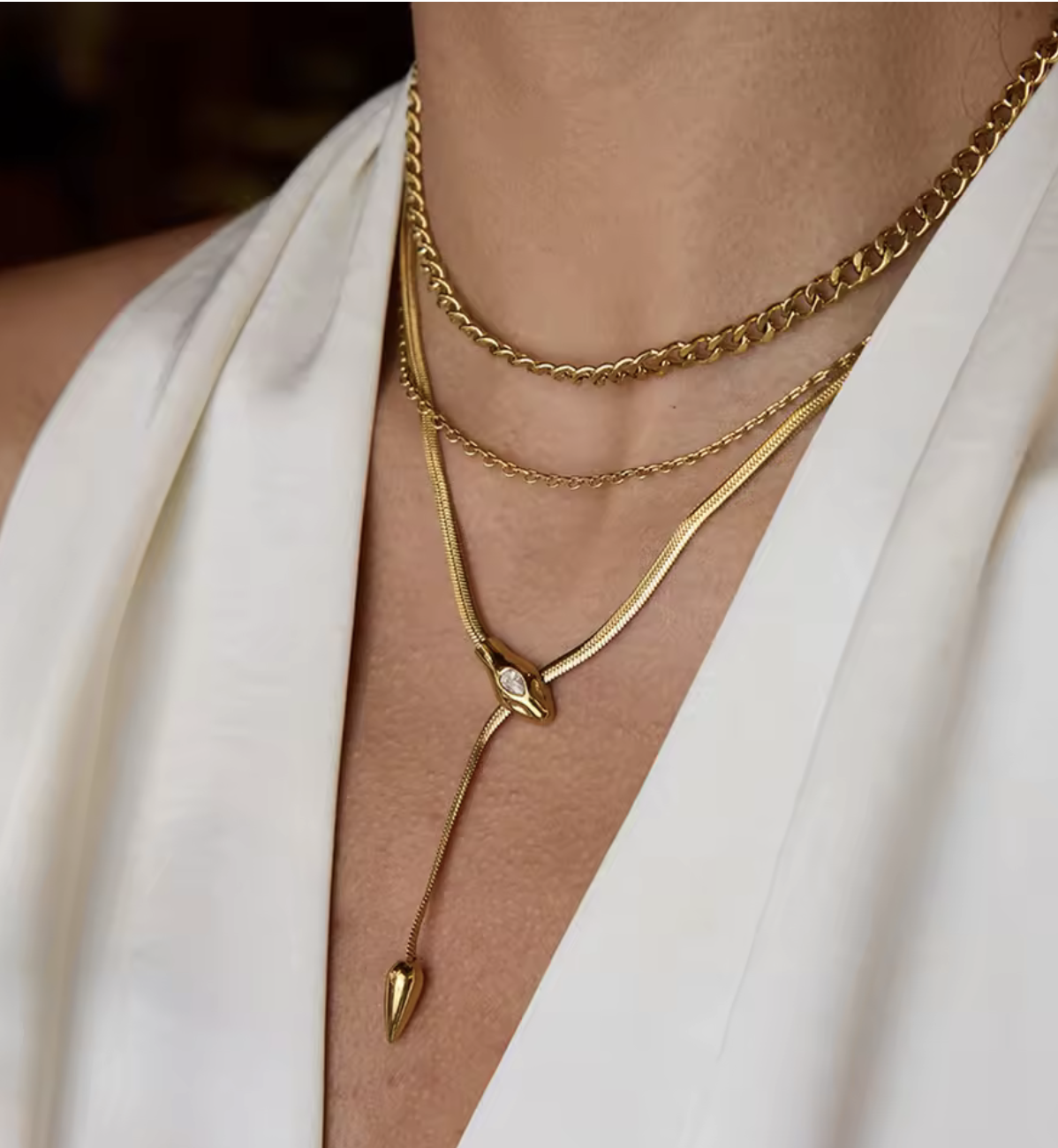Naszyjnik z twarzą żmijki. Efektowny naszyjnik z pozłacanej stali szlachetnej 316l