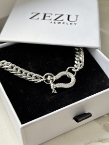Gruby, masywny naszyjnik z zawieszką wysadzaną diamencikami