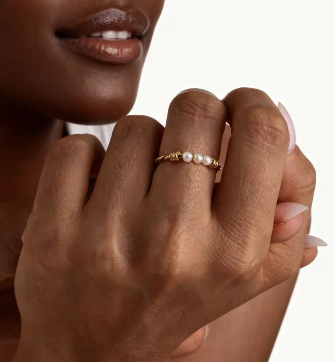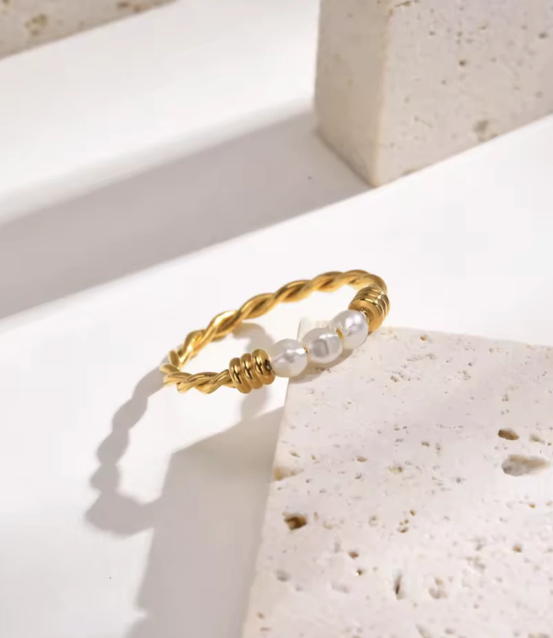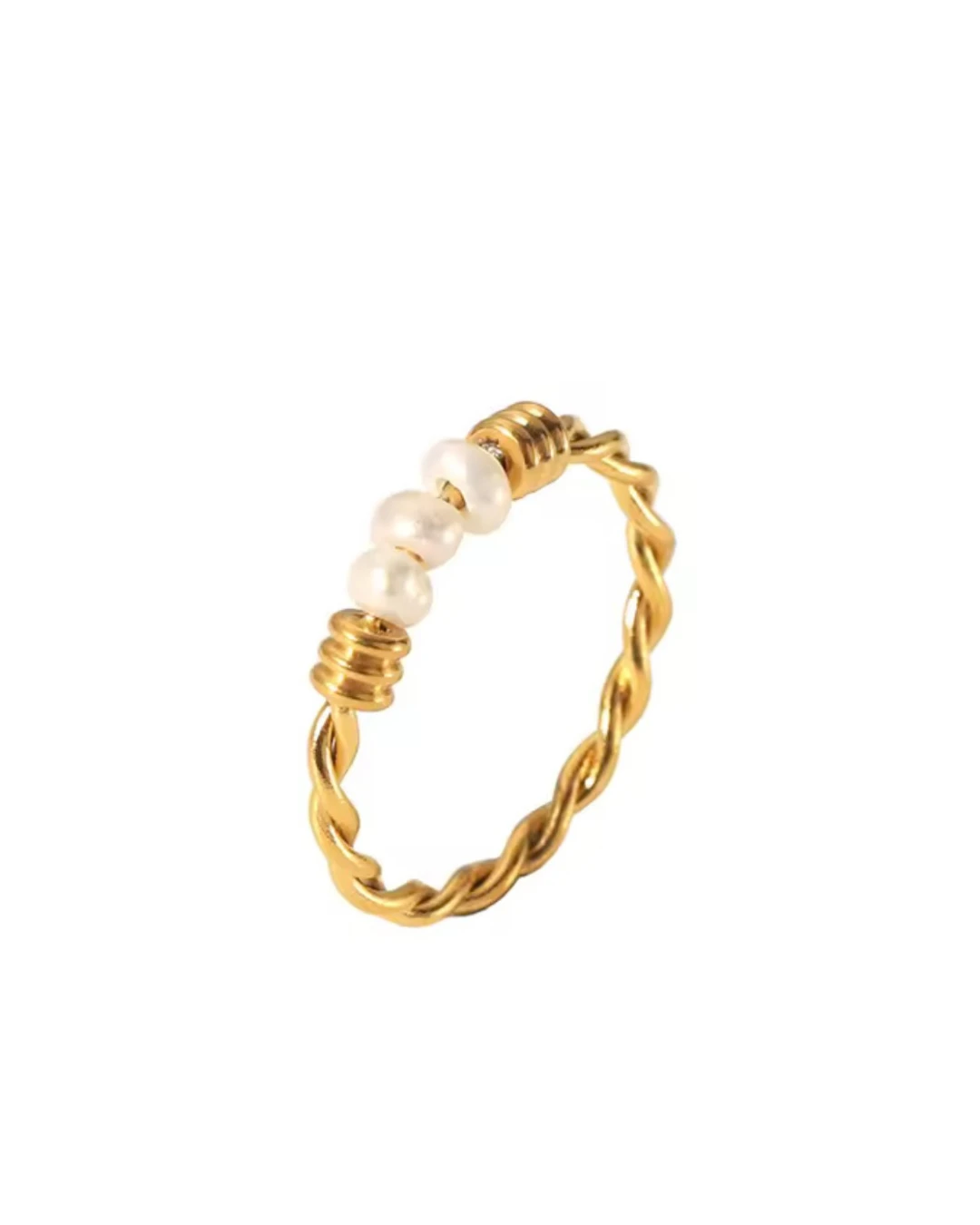Pleciony pierścionek z perłami naturalnymi