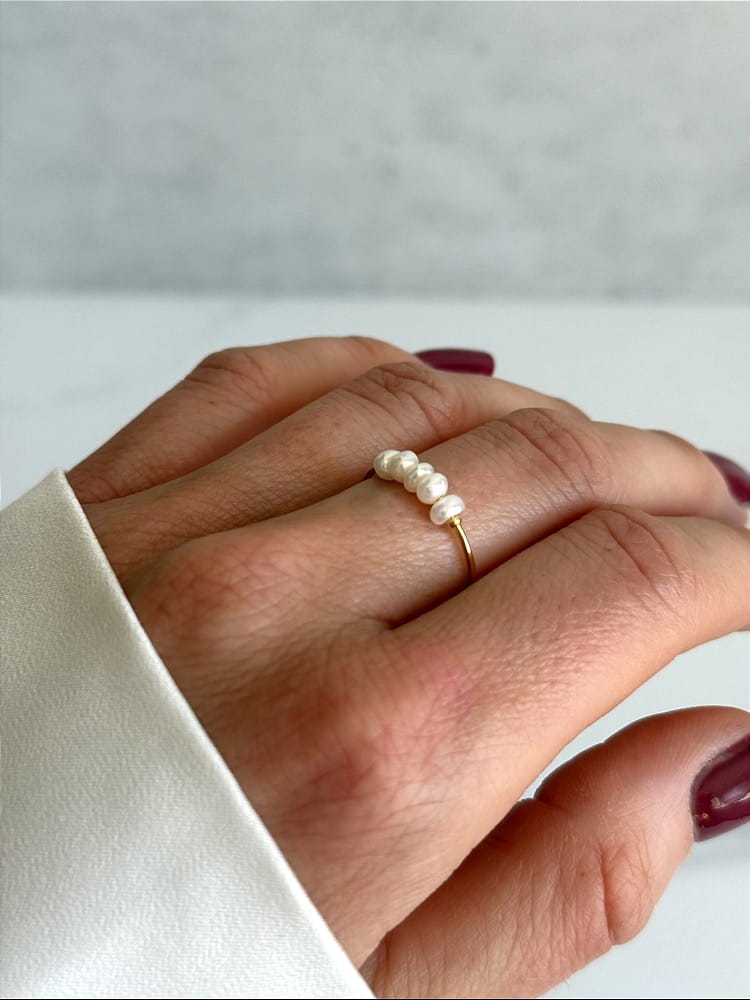 Delikatny, kobiecy pierścionek z perłami