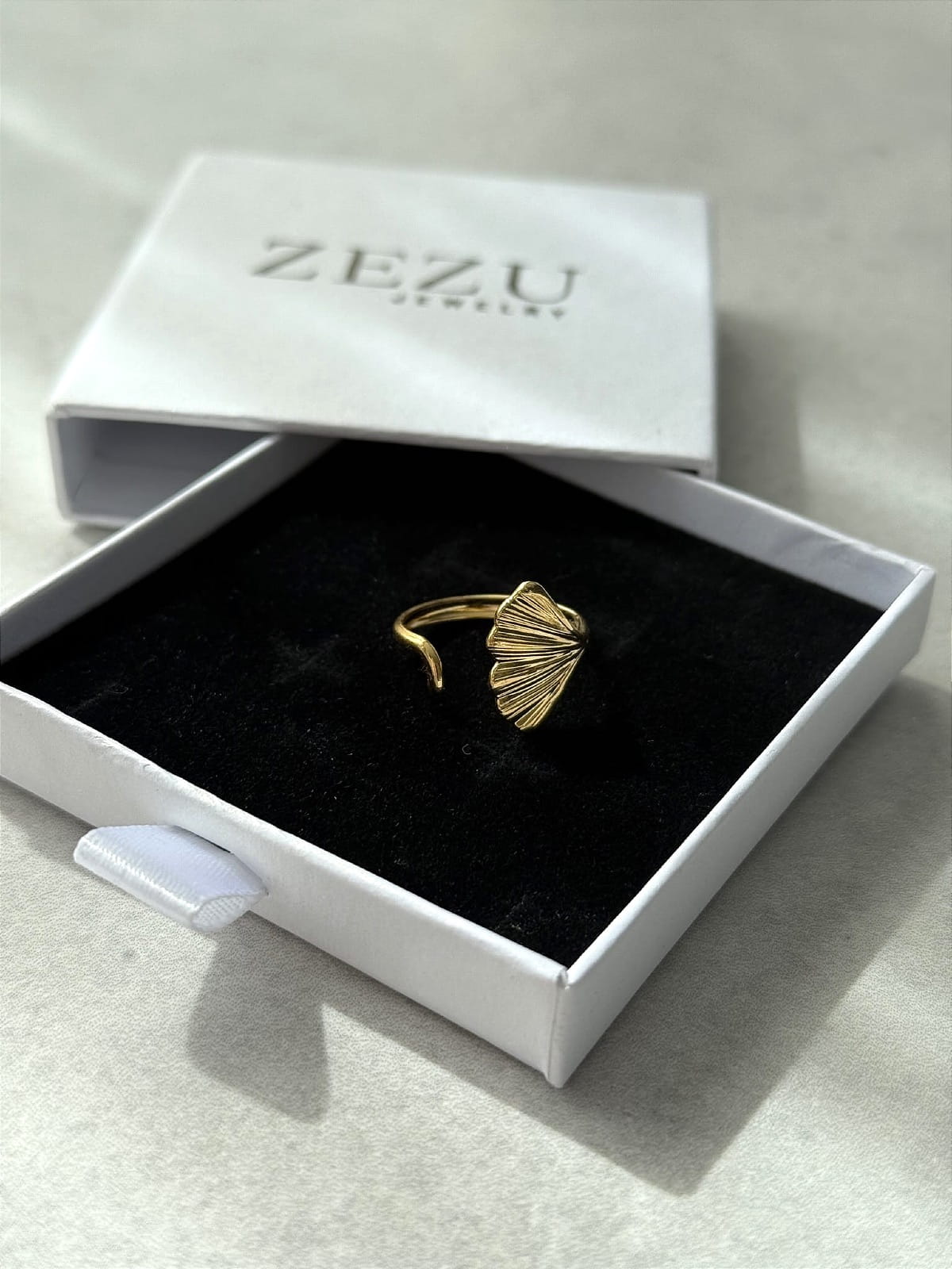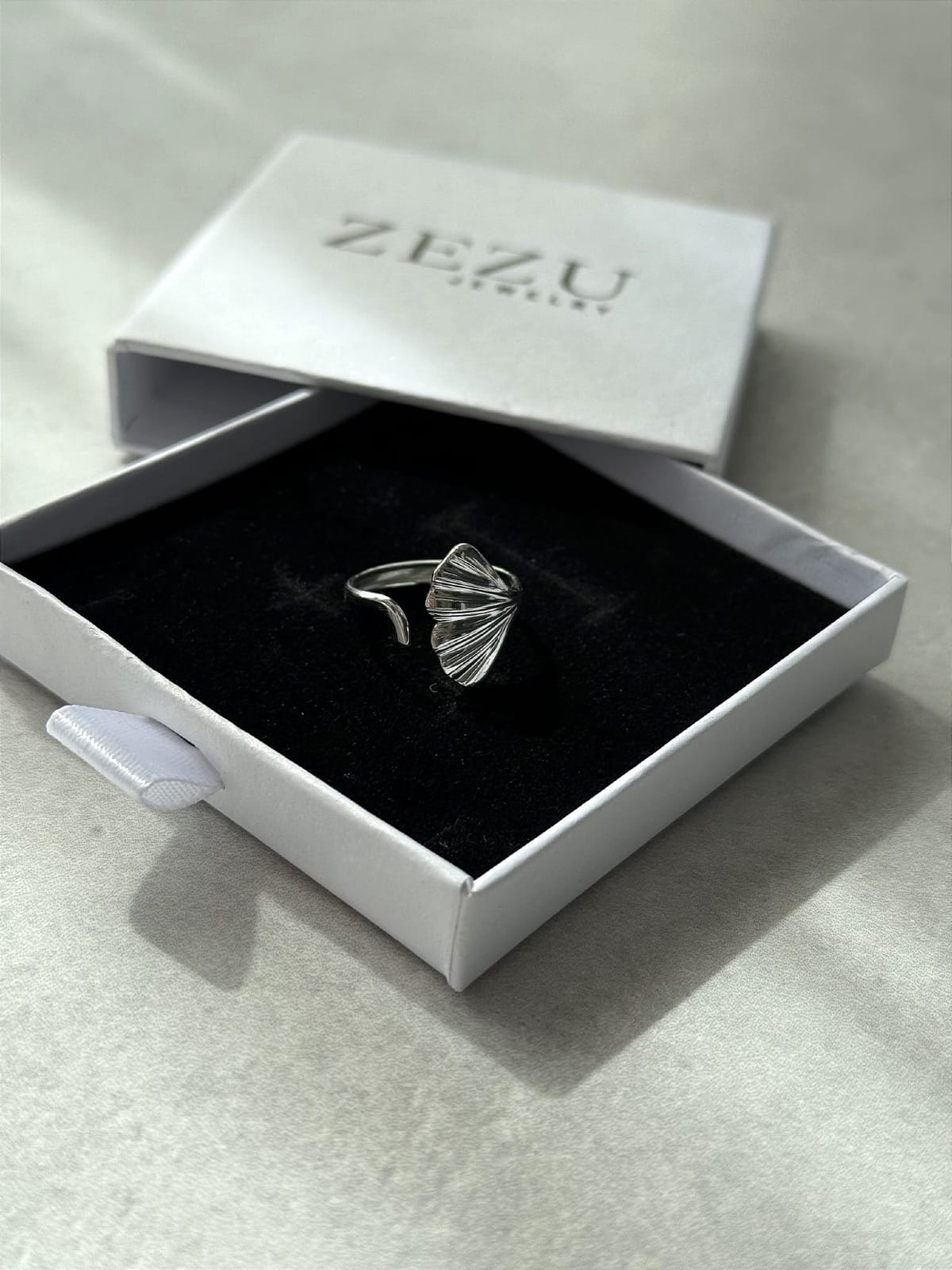 Pierścionek w kształcie liścia miłorzębu