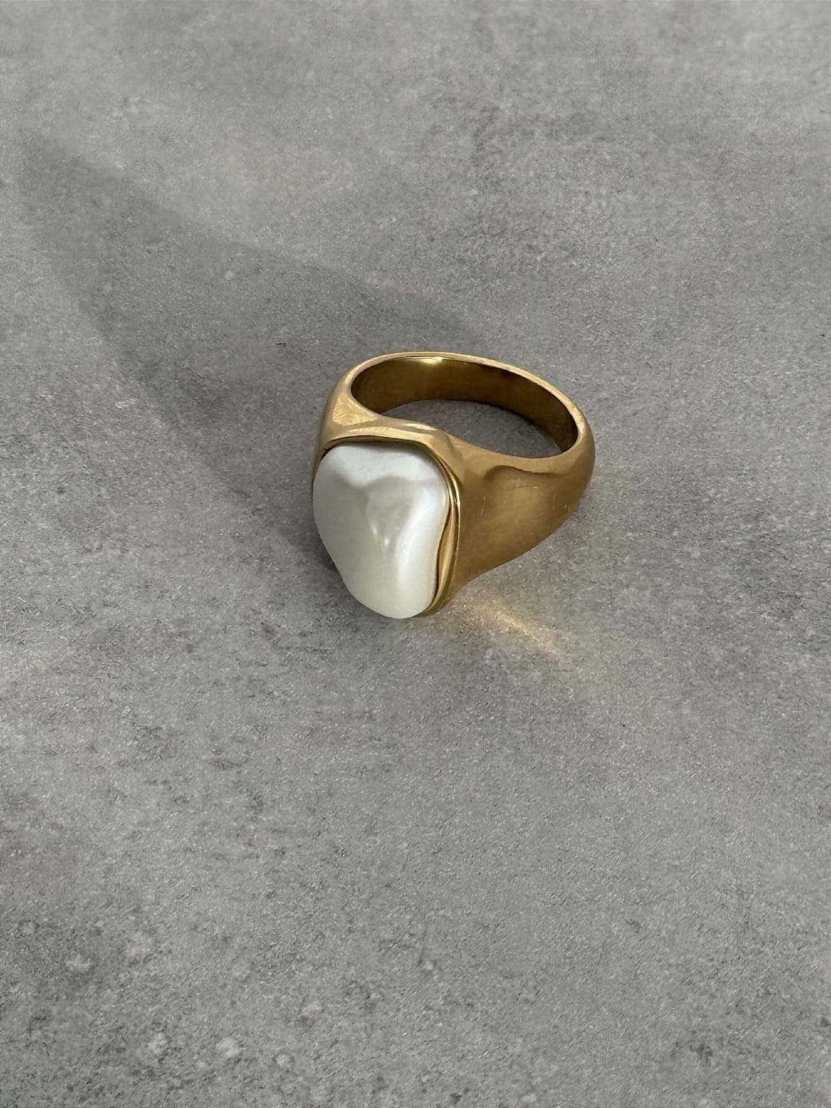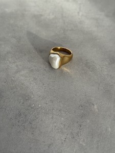 Efektowny pierścionek z syntetyczną masą perłową