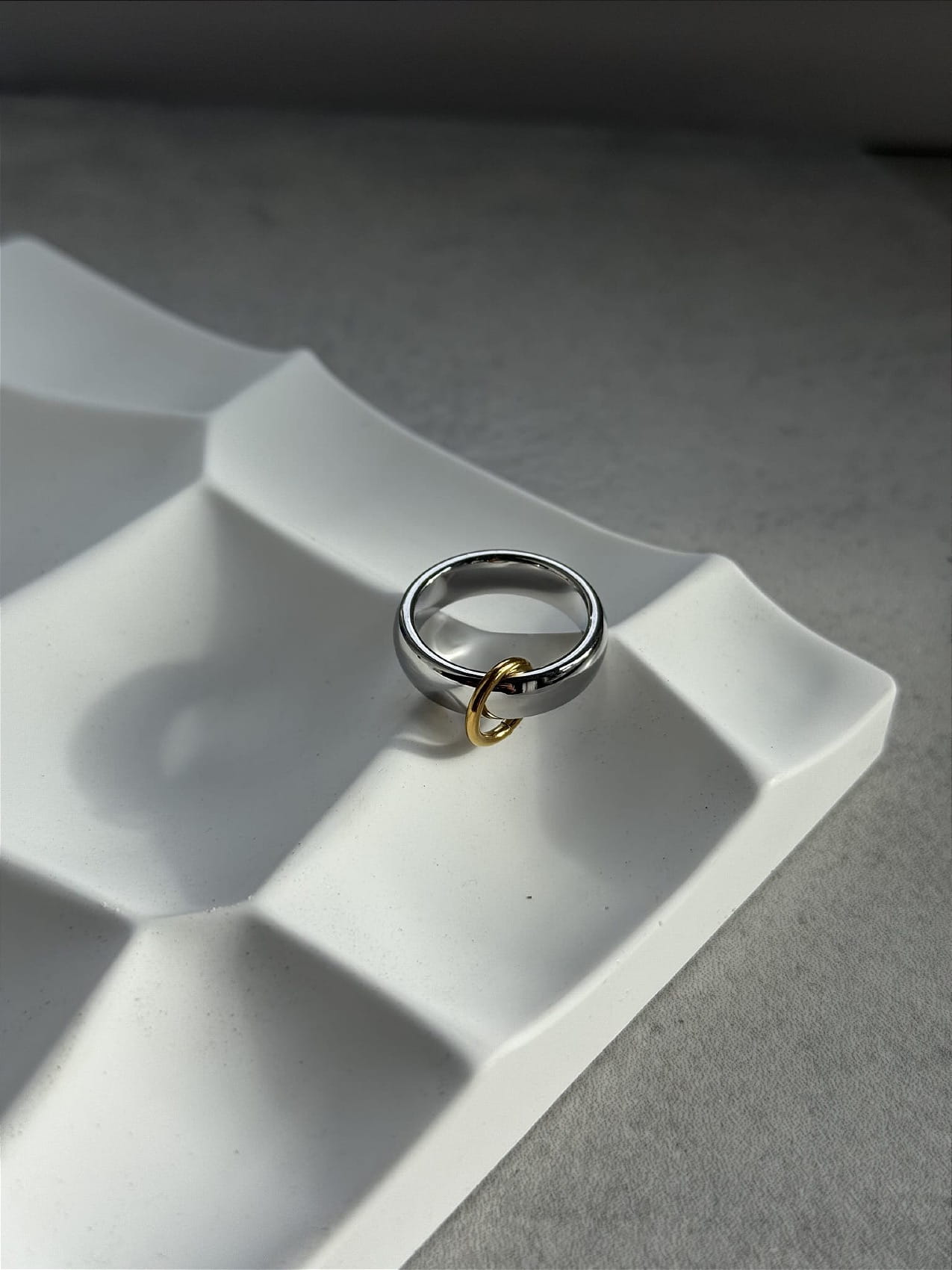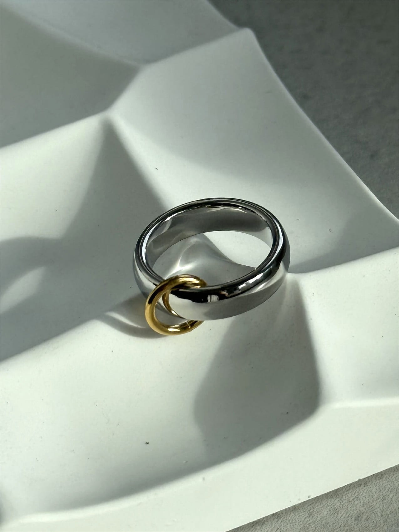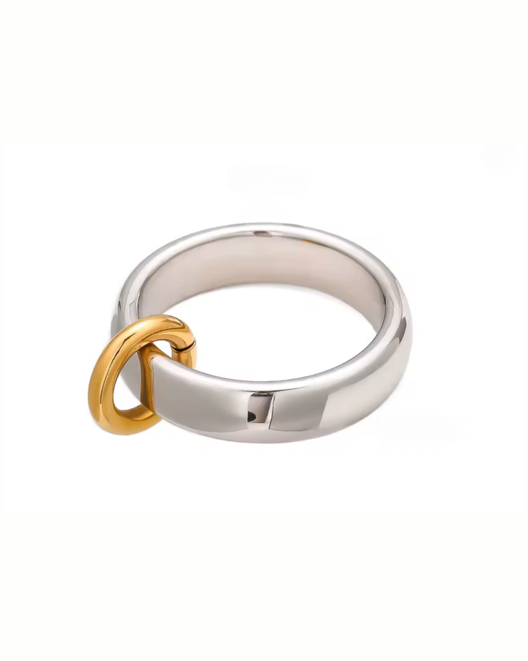 Obrączka w kolorze srebrnym z pozłacaną zawieszką