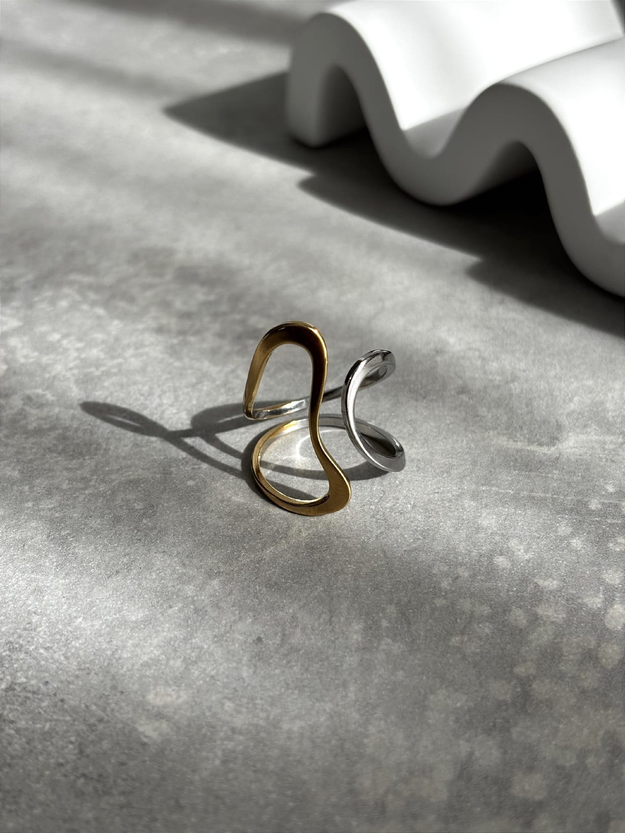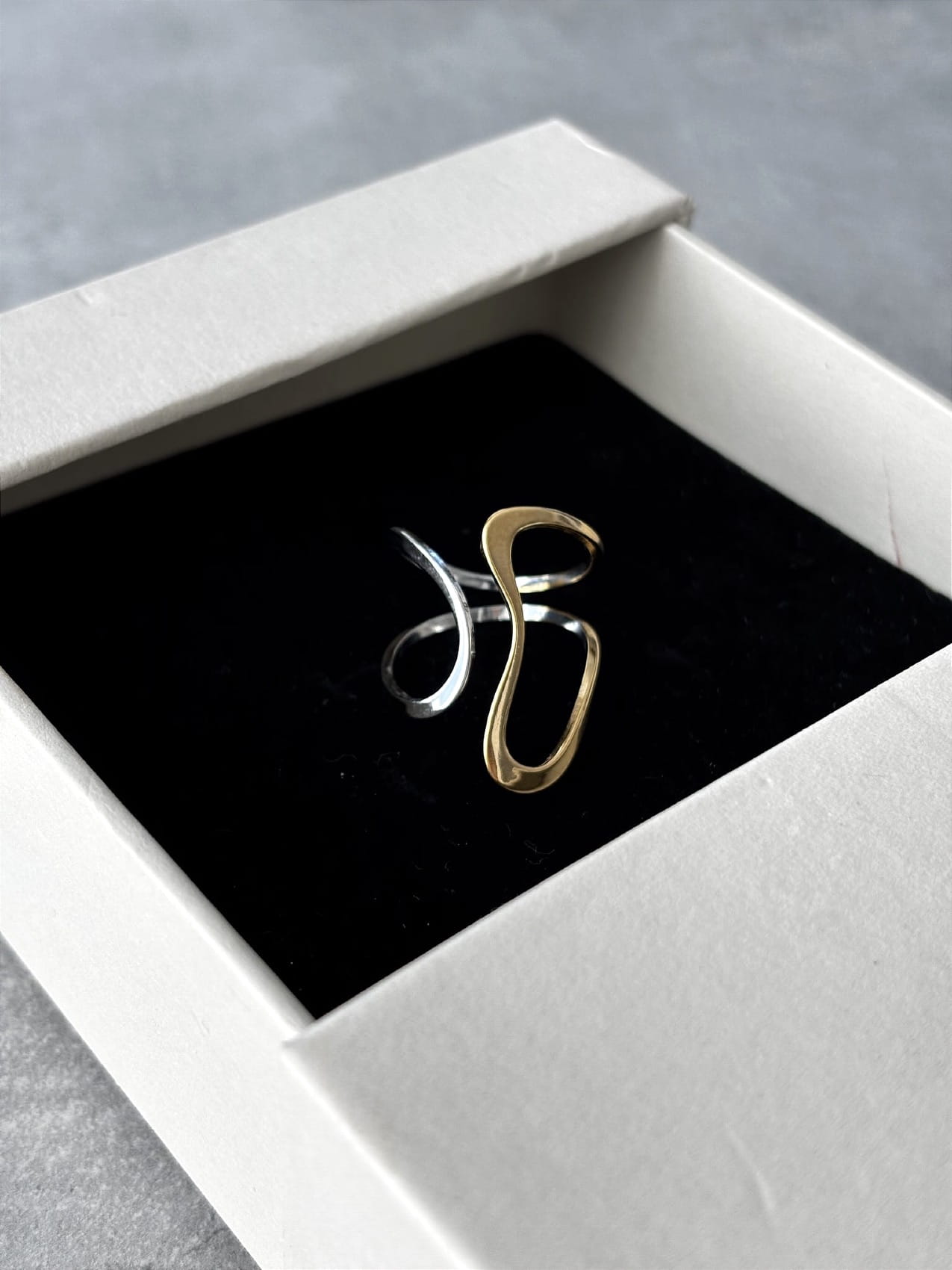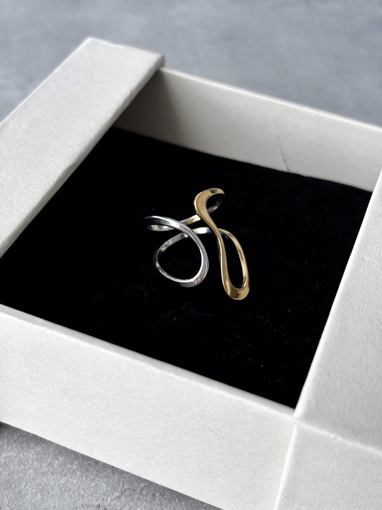 Dwukolorowy pierścionek o geometrycznej formie