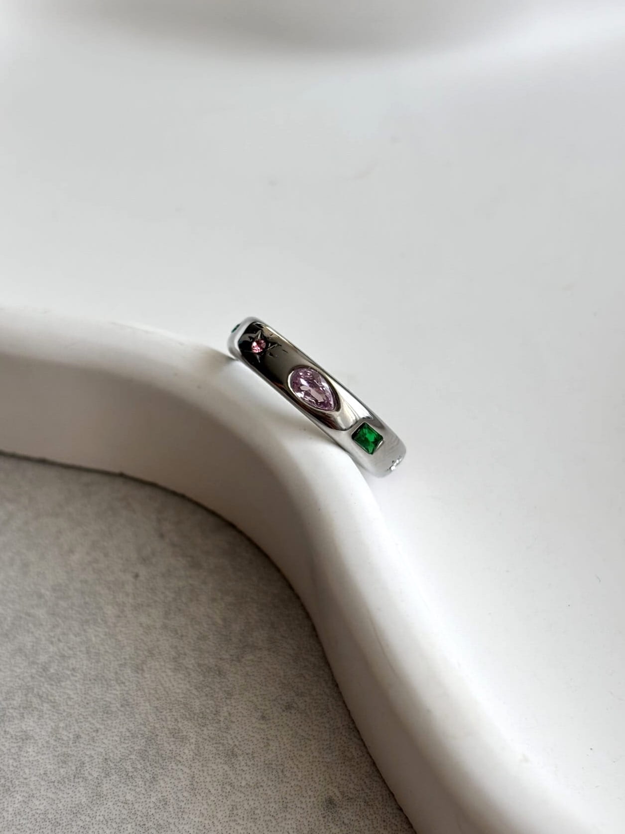 Obrączka z kolorowymi kamieniami