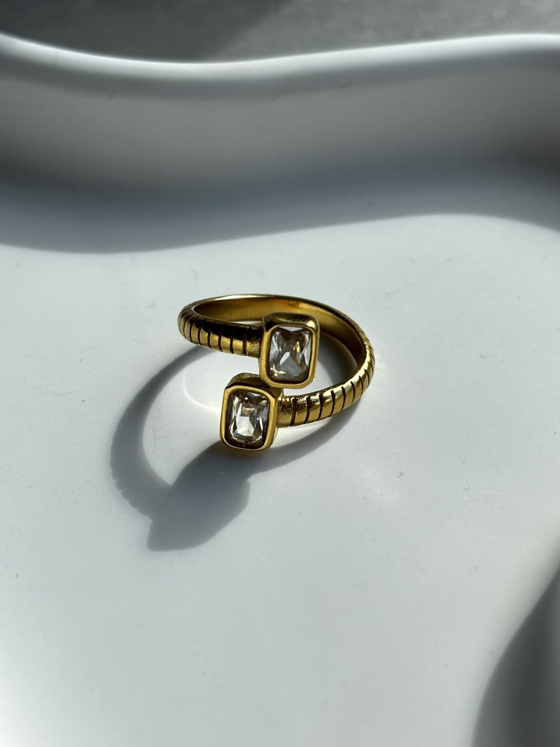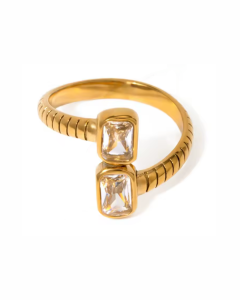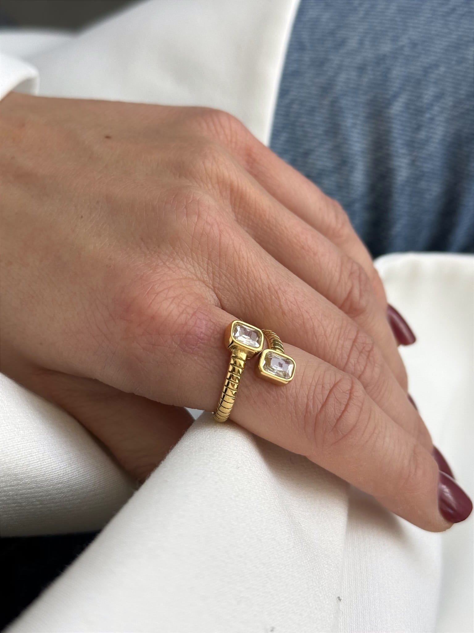 Wyjątkowy pierścionek z prostokątnymi kamieniami w kolorze białym