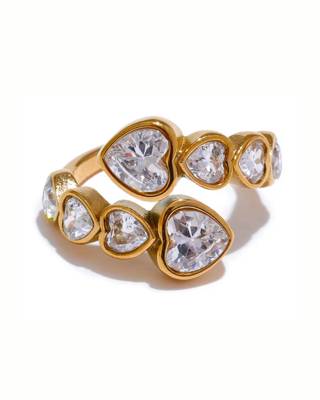 Pierścionek z łączonych cyrkoniami w kształcie serc
